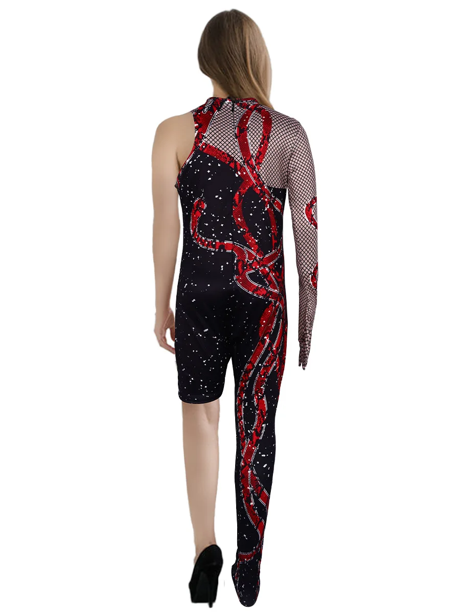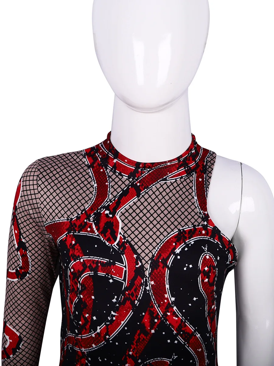 ZYHT 73963 Matte Satin Printed Geometric Pattern Maxi Women Asymmetric One Shoulder Ruched Hem Women Dress