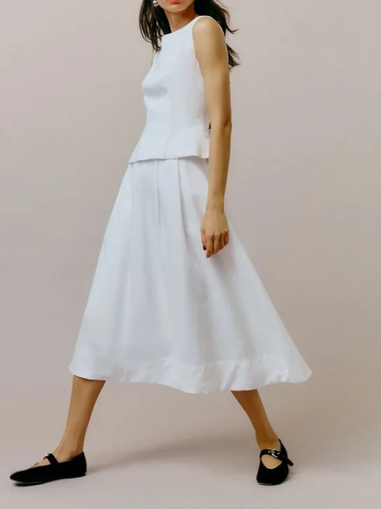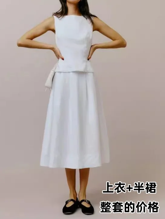 2026 Women's Summer Elegant A-Line Dress Short Sleeveless Top Knee Length Casual Dress Two-Piece Set Knee Length Solid Pattern