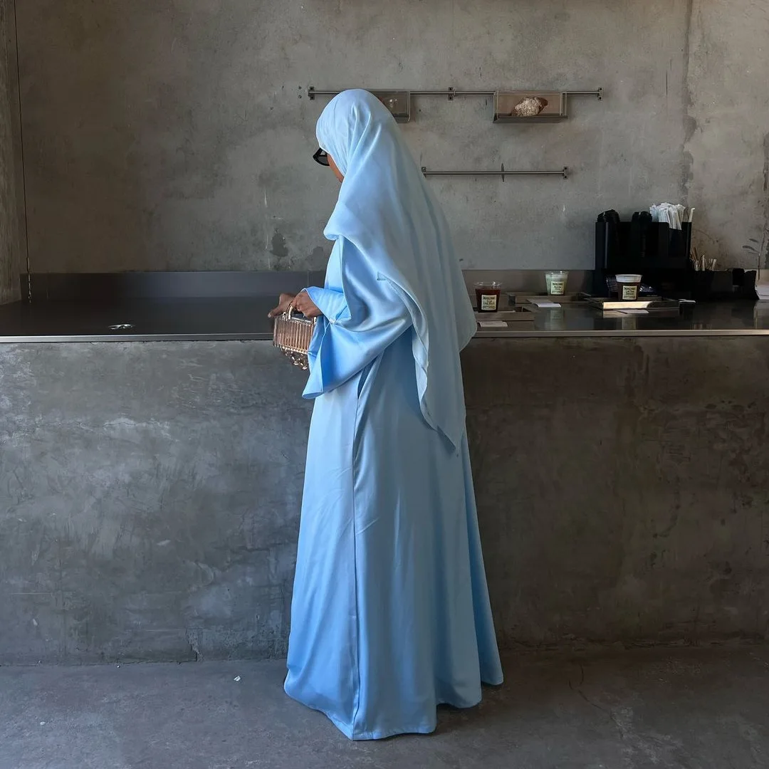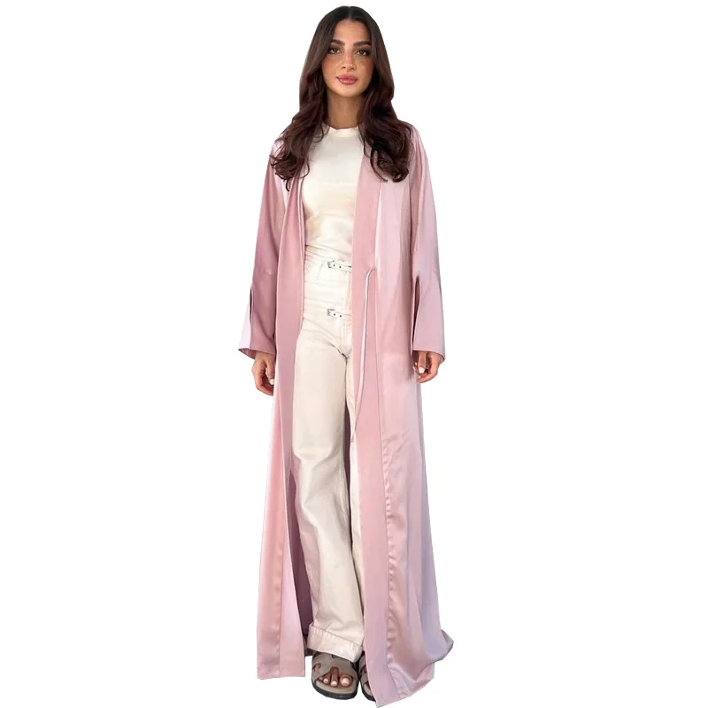 2026 Elegant Cardigan Satin Robe Solid Polyester Abaya for Muslims for Summer Autumn and Spring in Middle East