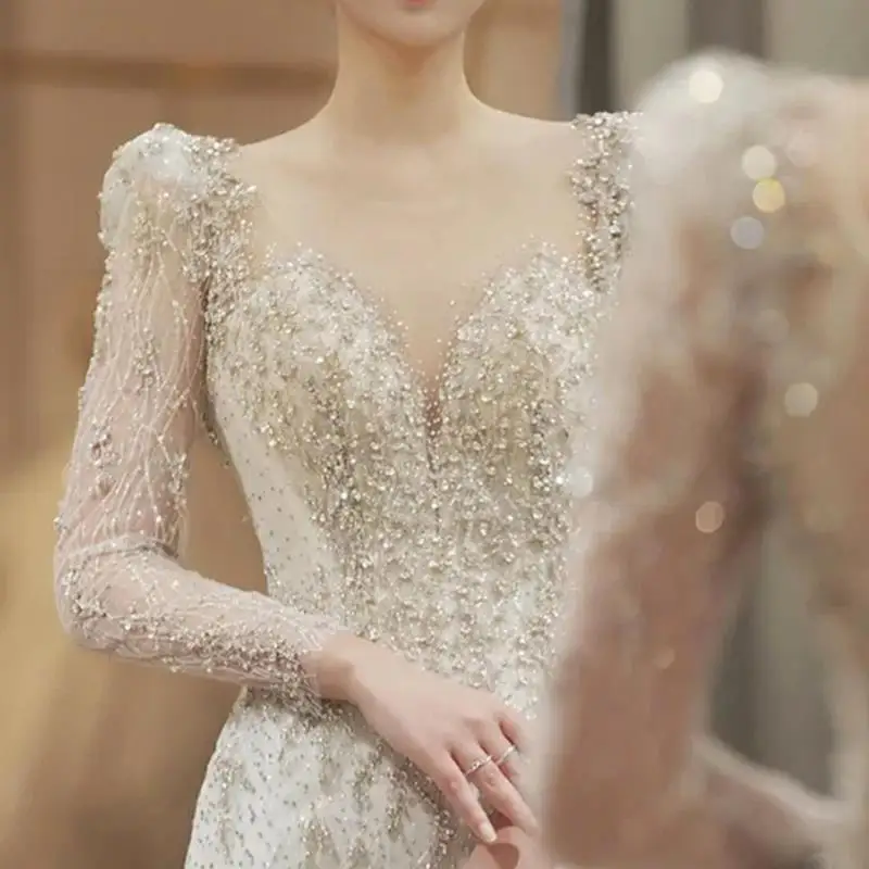 ZYHT 21541 Wholesale Crew Neck High Waist Casual Dresses Elegant Lace Velvet Mermaid Hem Ruched Long Sleeve Dresses for Women