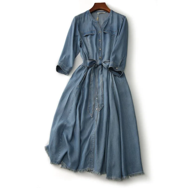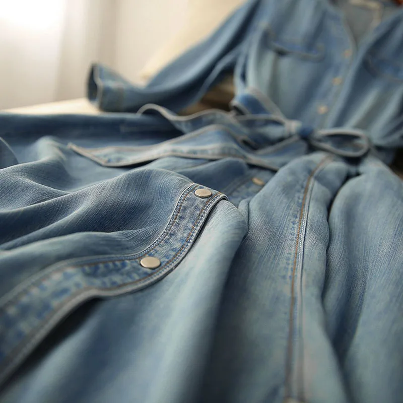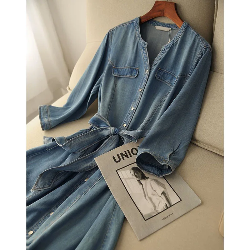 2026 Arrival Niche Design Luxury Chic Retro Light Blue Summer Casual Denim Dress