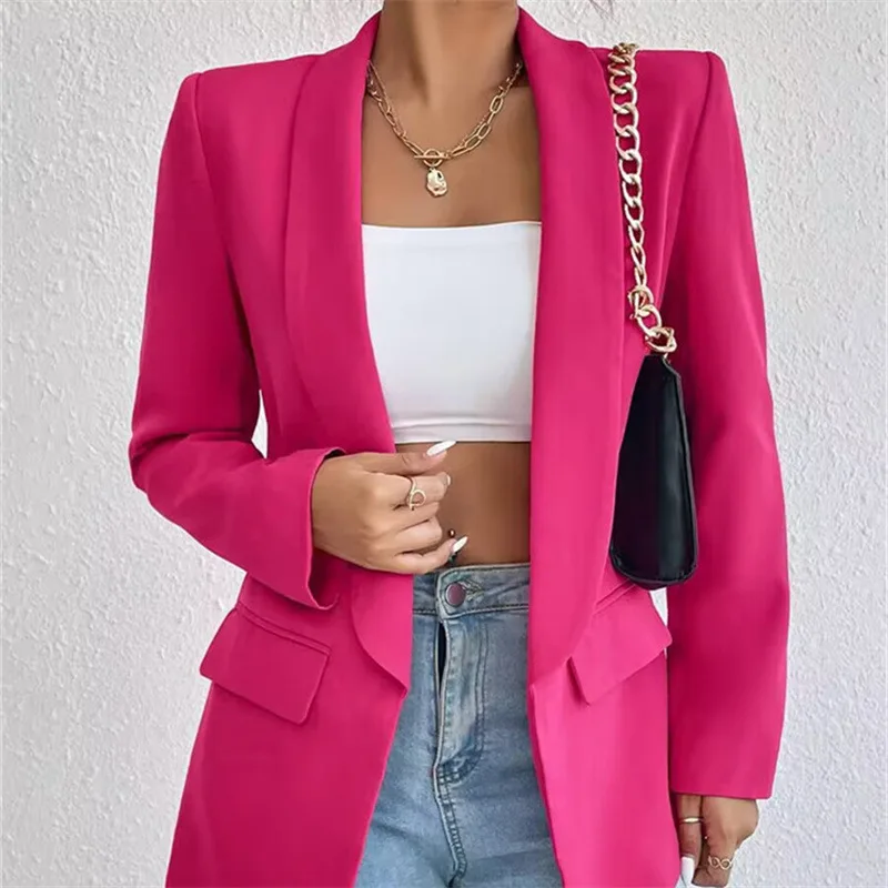 Elegant Solid Pattern Woven Women's Blazer Custom Factory-Made Pink Lady Career Suit with Multicolor Button-Decorated