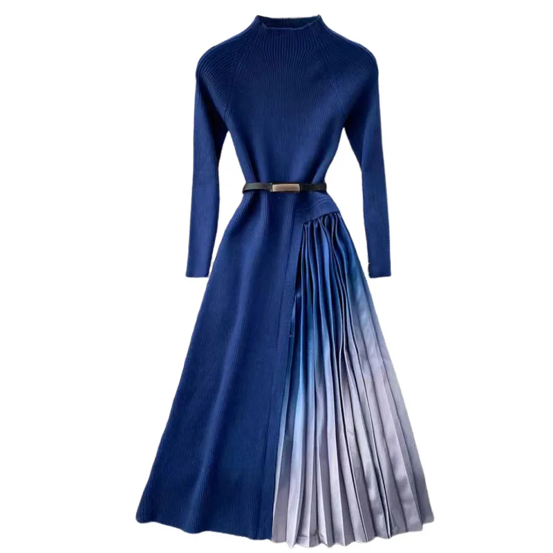 ZYHT 73902 Dark Green Blue Long Sleeve Simple Elegant Evening Dress Customize High End Women Clothing Manufacturer
