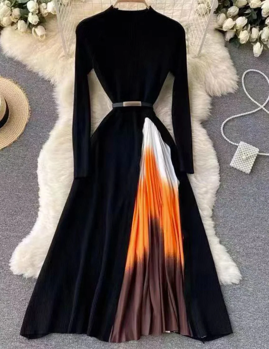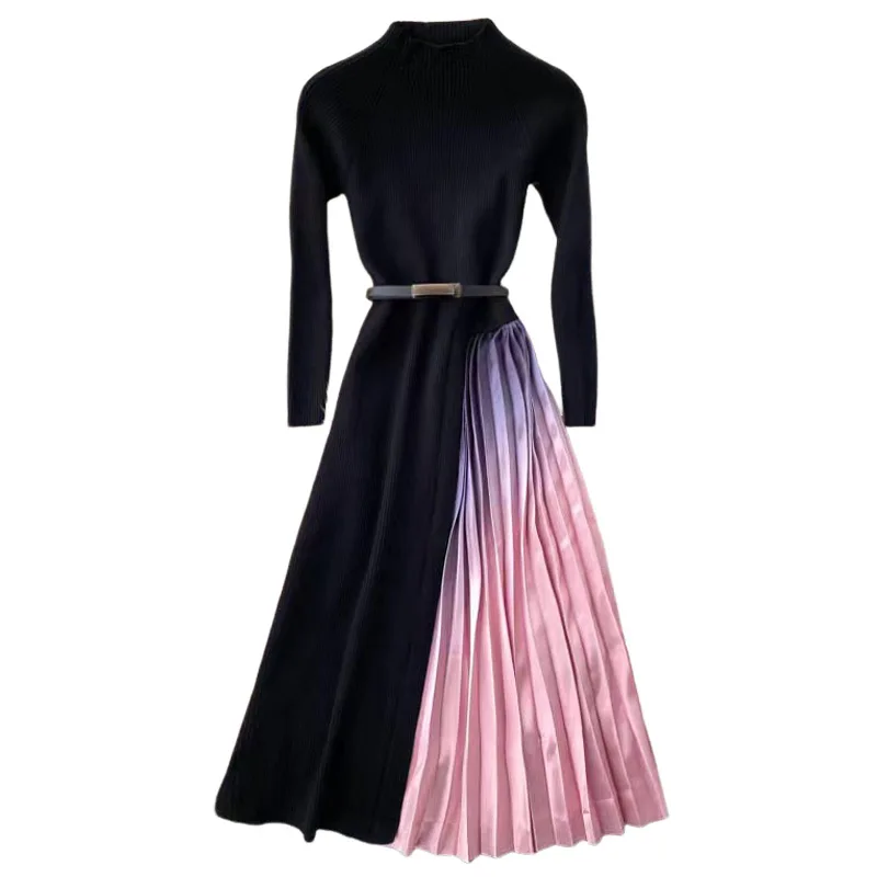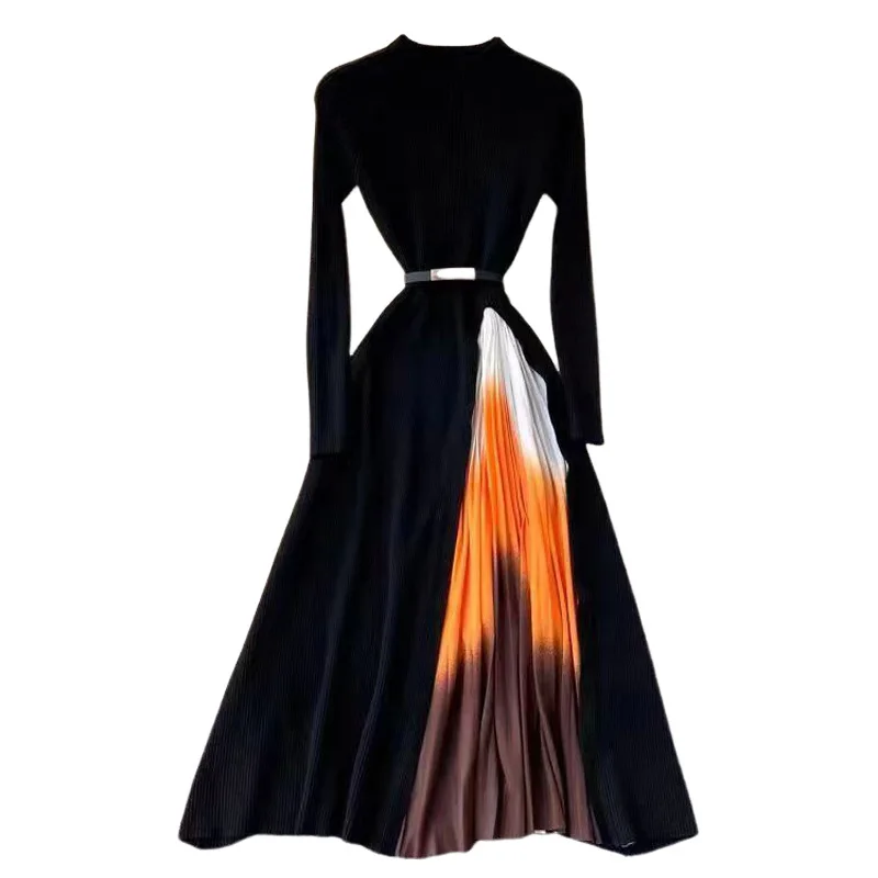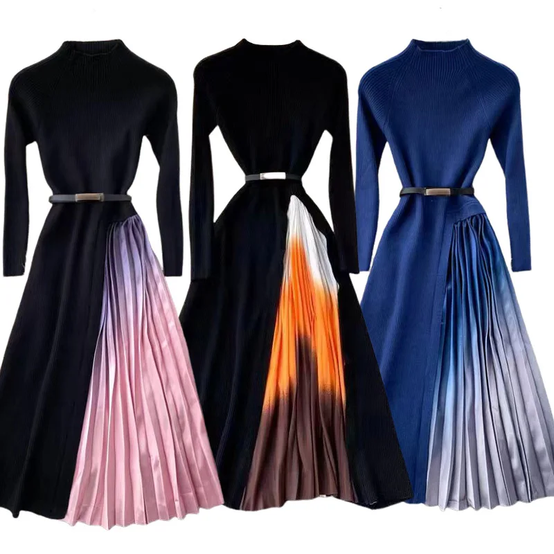 ZYHT 21541 Wholesale Crew Neck High Waist Casual Dresses Elegant Lace Velvet Mermaid Hem Ruched Long Sleeve Dresses for Women
