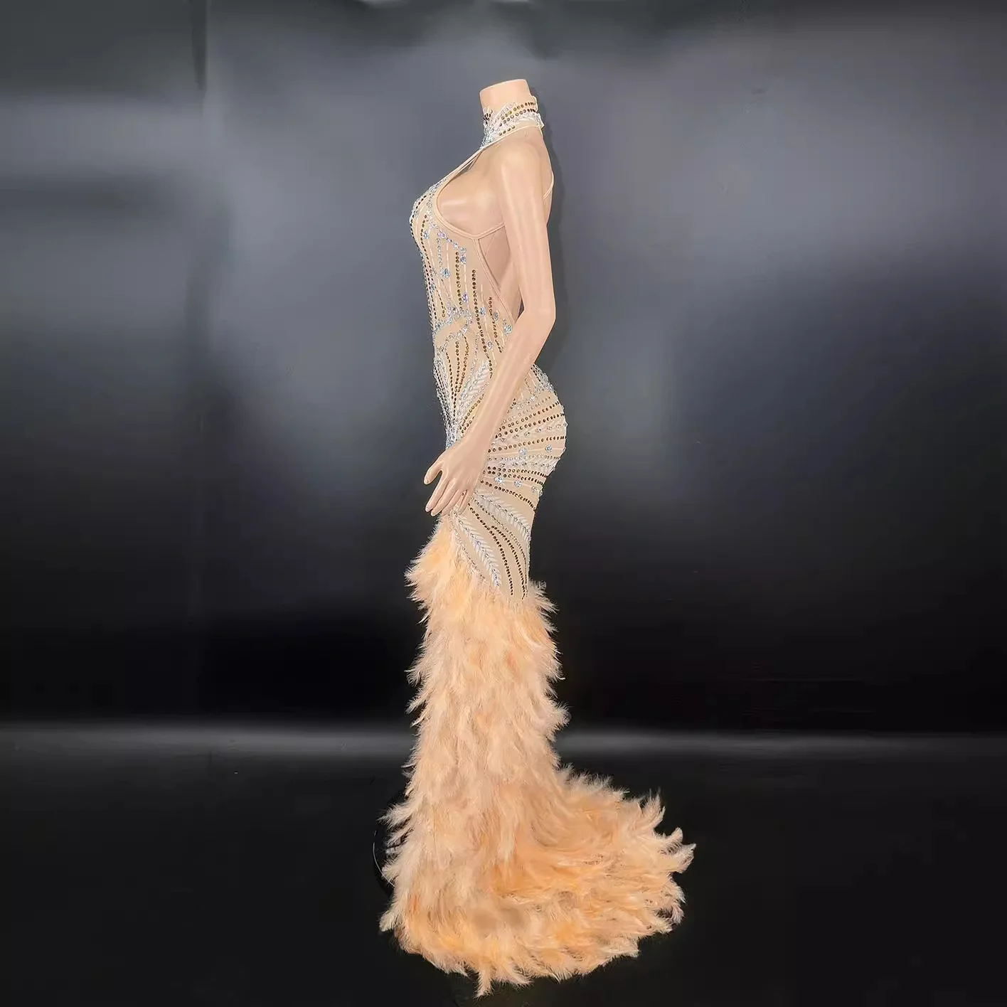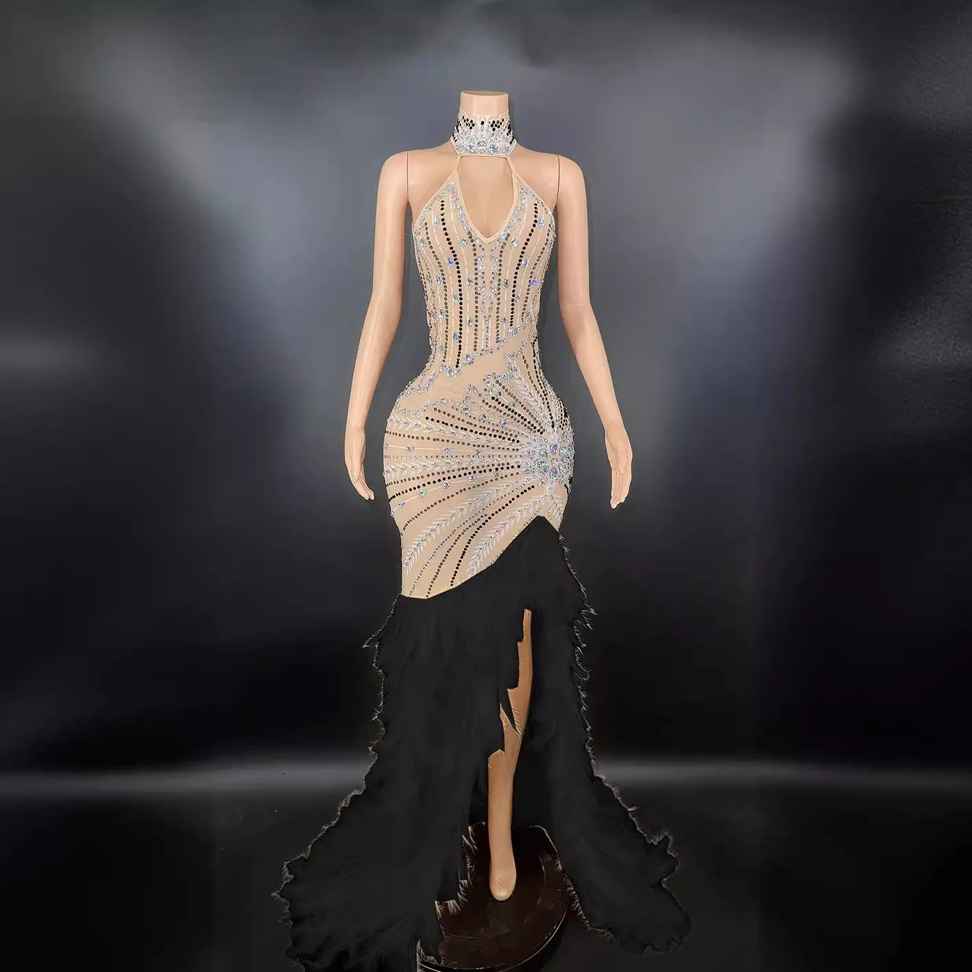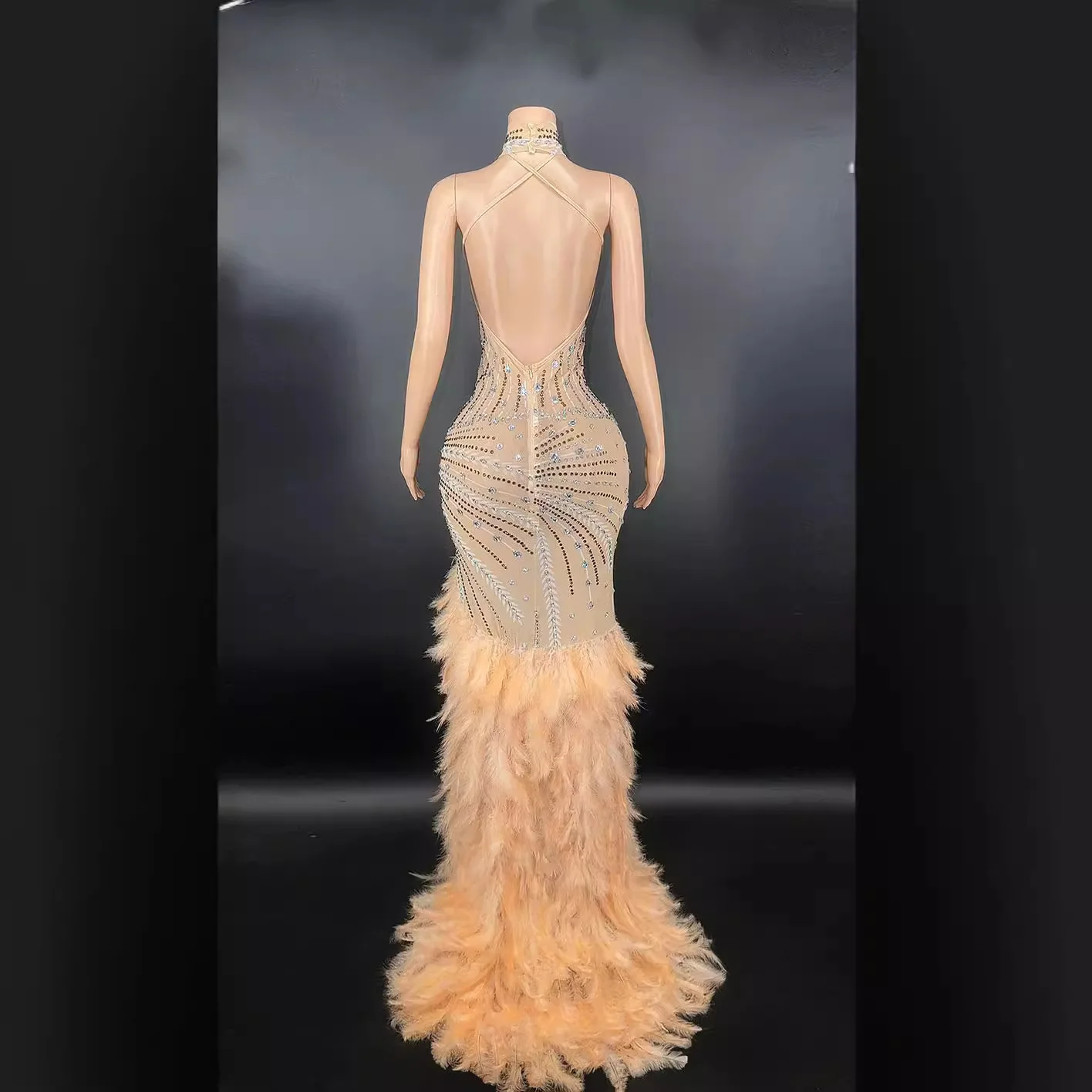 Luxury High Quality Summer Evening Dress Empire Waist Rhinestone Sequined Prom Gown Tassels Feather Button Floor-Length