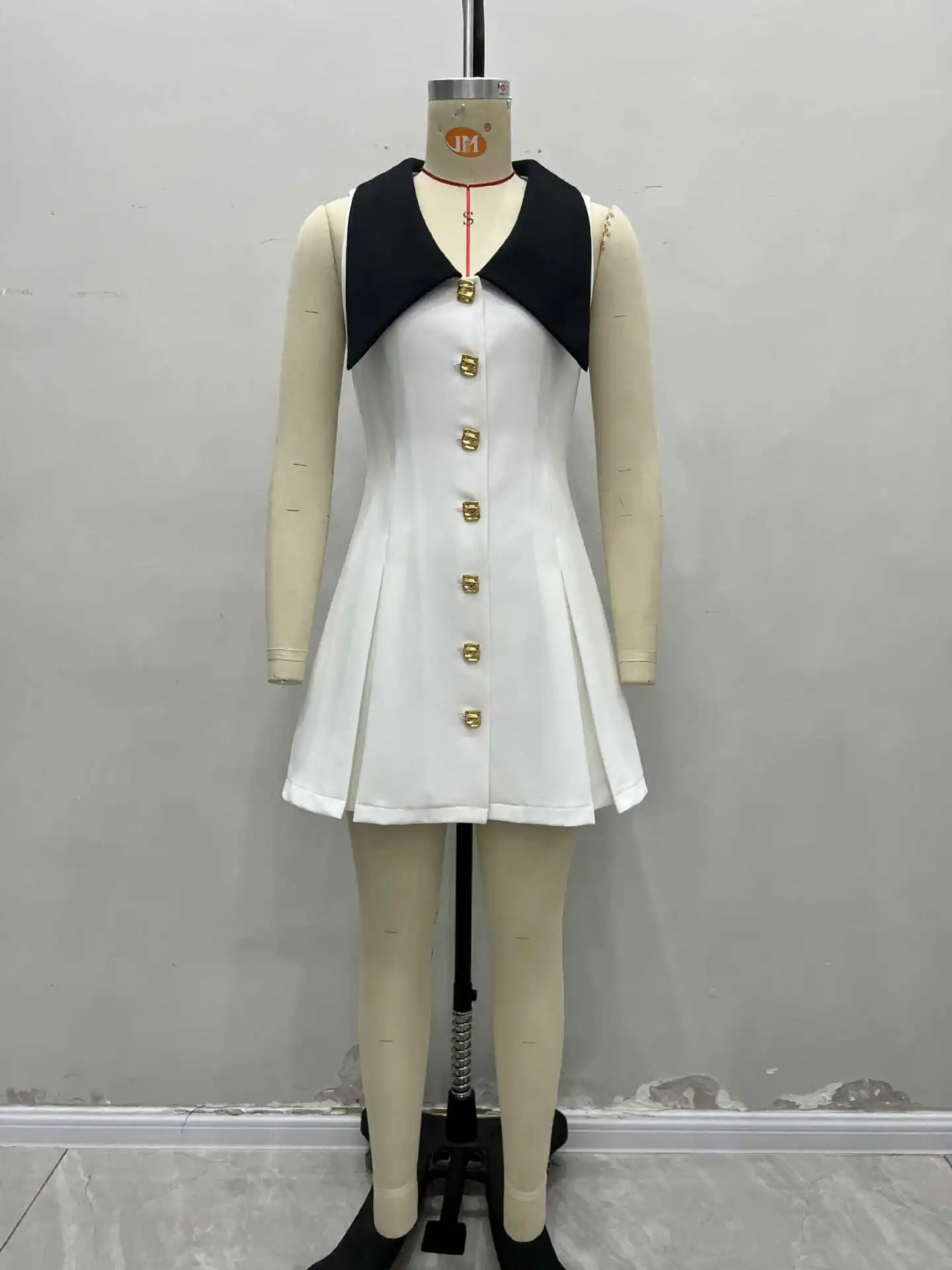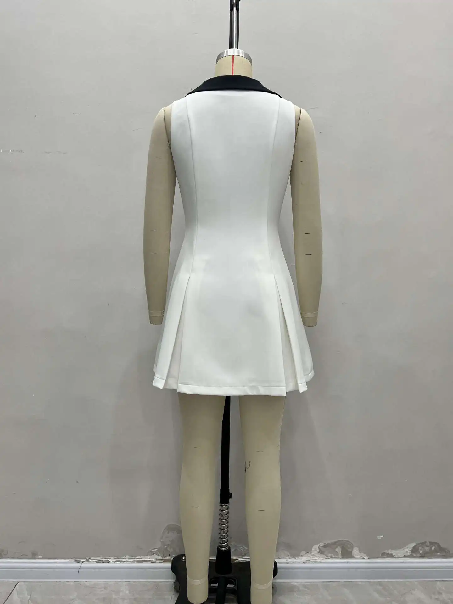 Manufacturer Designed Casual Office Wear Dress Chiffon Fabric High-End Sense Sleeveless Large Lapel Solid Waist Metal Buckle