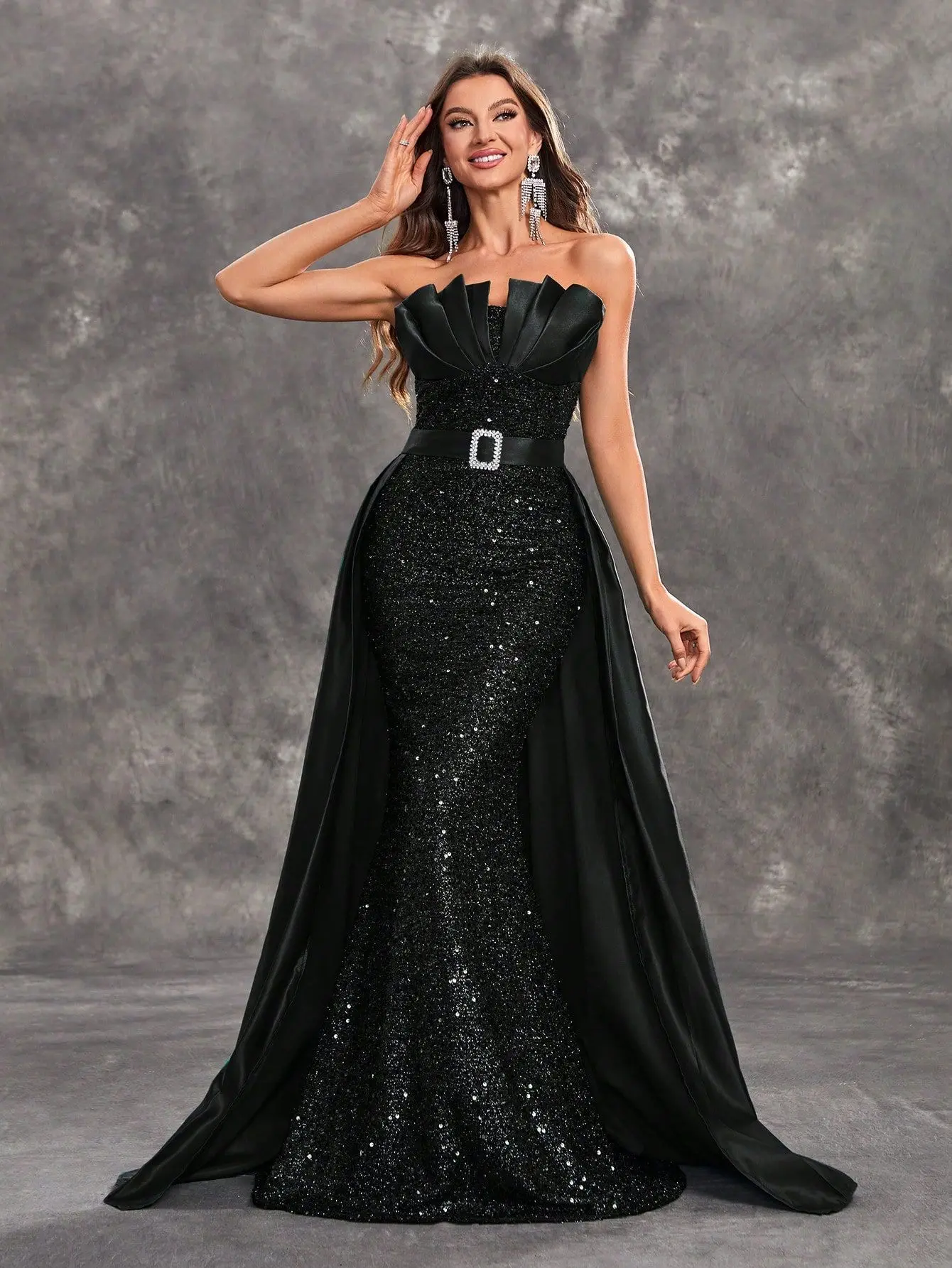 Elegant Ladies Evening Party Gown Strapless Satin Floor-Length Dress with Lace Decoration Natural Waistline for Summer Prom