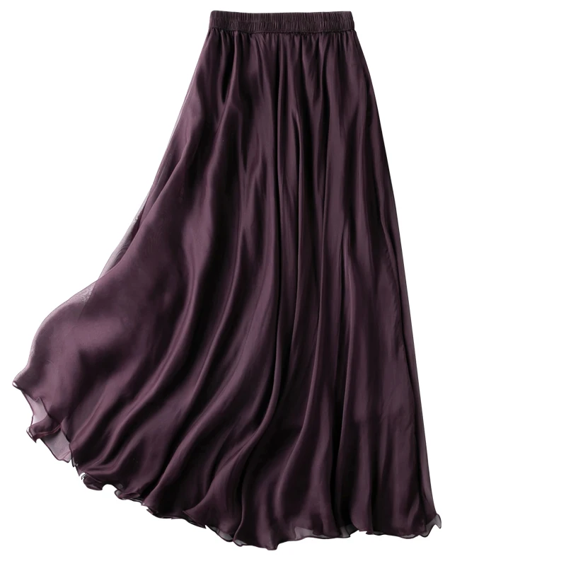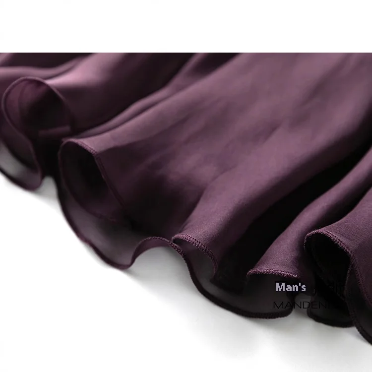 Elegant AA Satin Dress Oblique Cutting Big Pendulum Three-Layer Skirt Natural Purple Casual Style Summer Elastic No Splicing