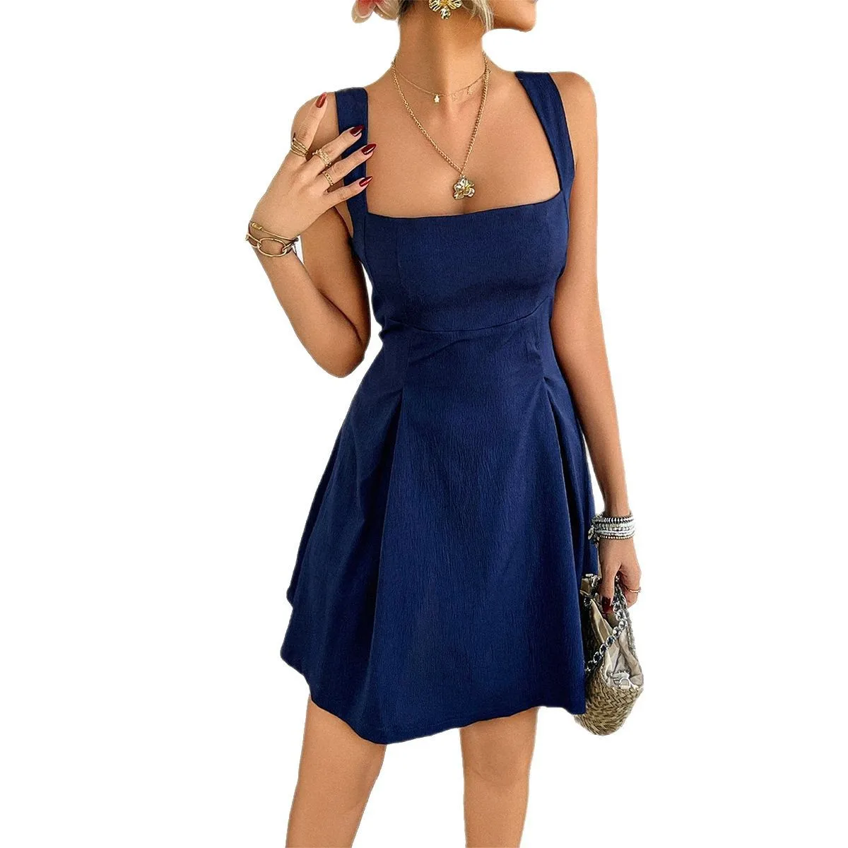 Women's Anti-Static Casual Summer Dresses Spaghetti Strap Square Collar Solid Pattern Woven Natural Plain Dyed Technique