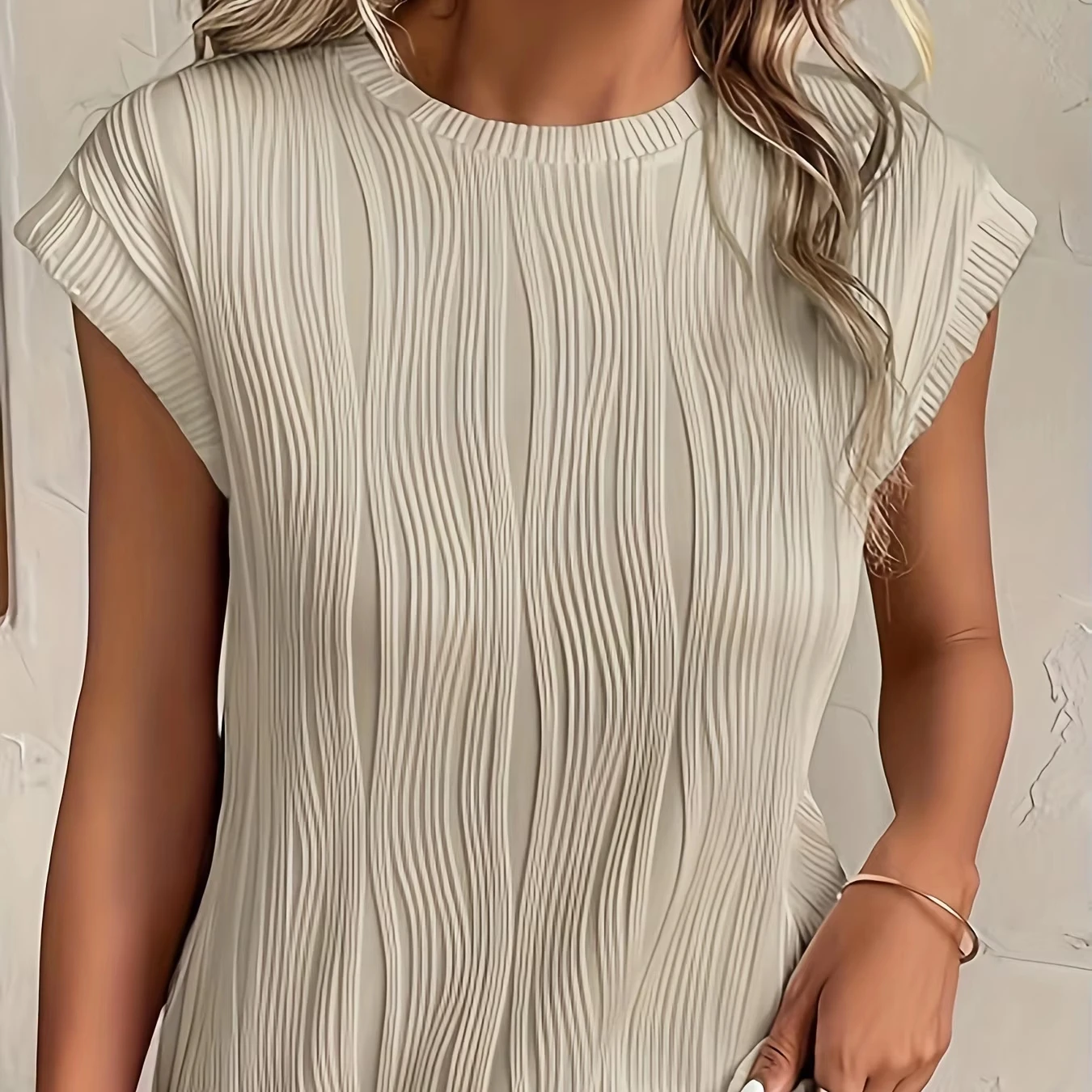 Lady's Daily Casual Basic T-Shirt Simple Classic with Vertical Stripes 100% Cotton Knitted Fabric for Summer Wear