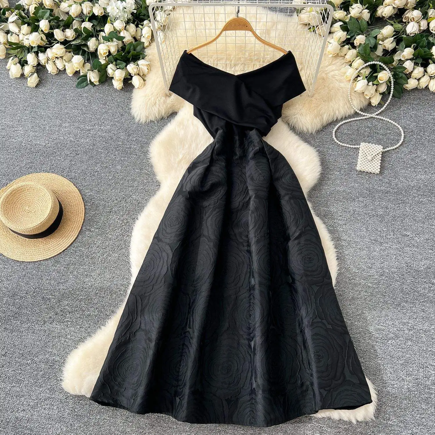 Women's Casual Chiffon One-Shoulder Dress with Jacquard Waist Solid Pattern Natural Midi Length Digital Printing
