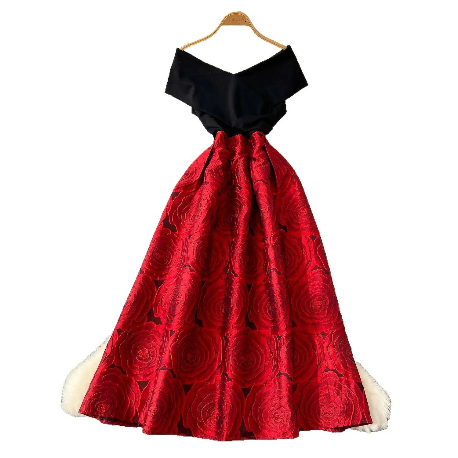 ZYHT 15325 Wholesale Spring Trendy Fashion Long Sleeve Dinner White Lace Black Velvet Elegant Party Dress Women Evening Dresses