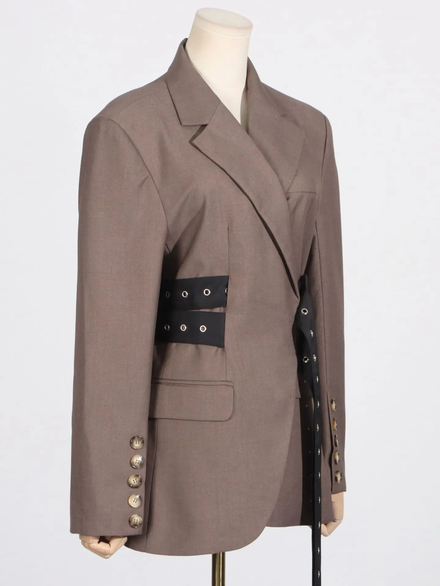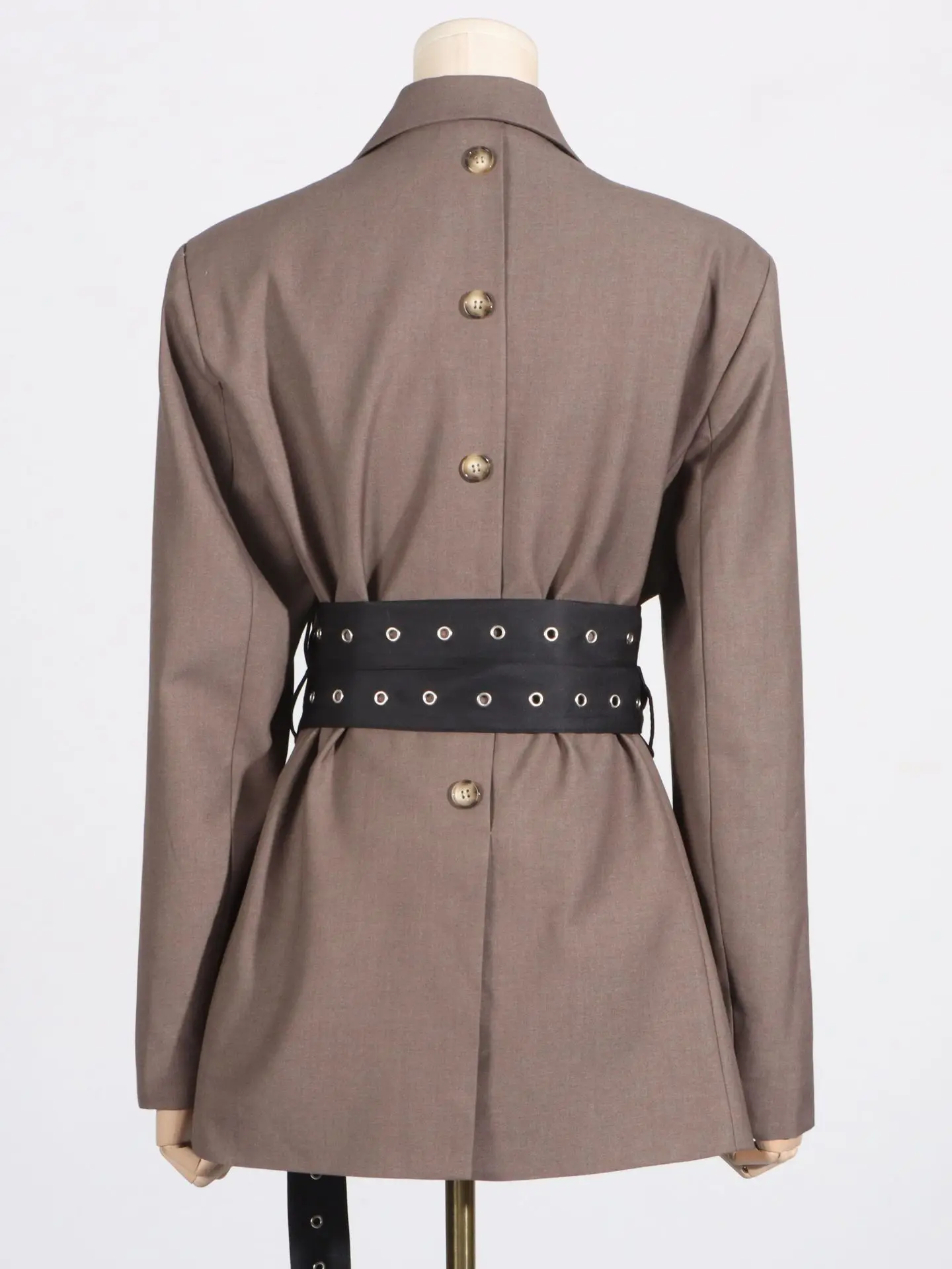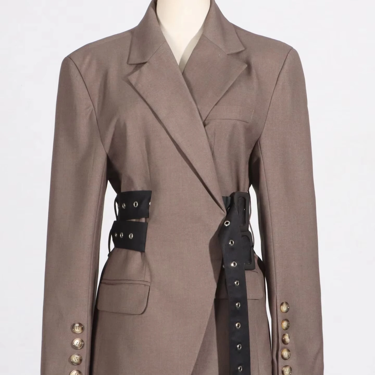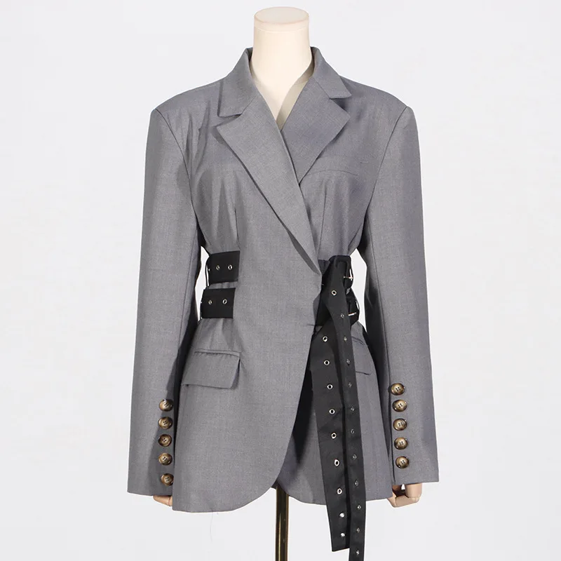 Trendy Oversized Grey Suit Set with Decorative Belt Detailing High - Fashion Grey Two Piece Suit Blazer Trousers with Long Belt