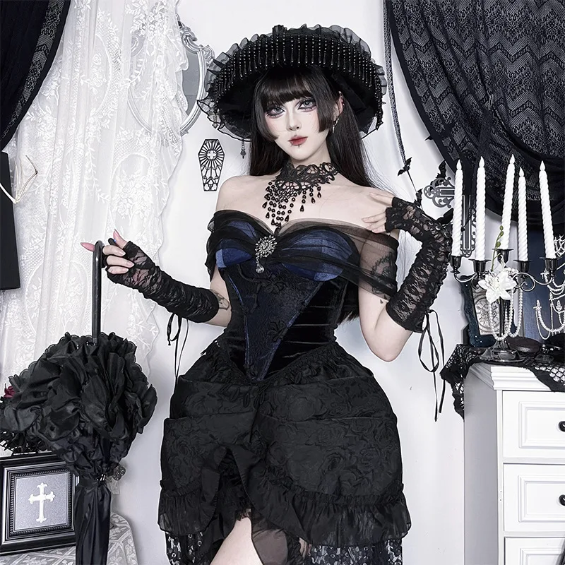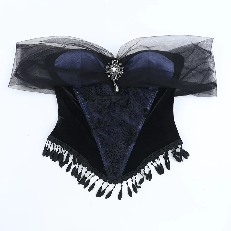 OEM ODM Customize Gothic Velvet Lace Strapless Corset Top - Dark Aesthetic Tulle Shoulder Trim Tassel Decor Bodycon Bustier