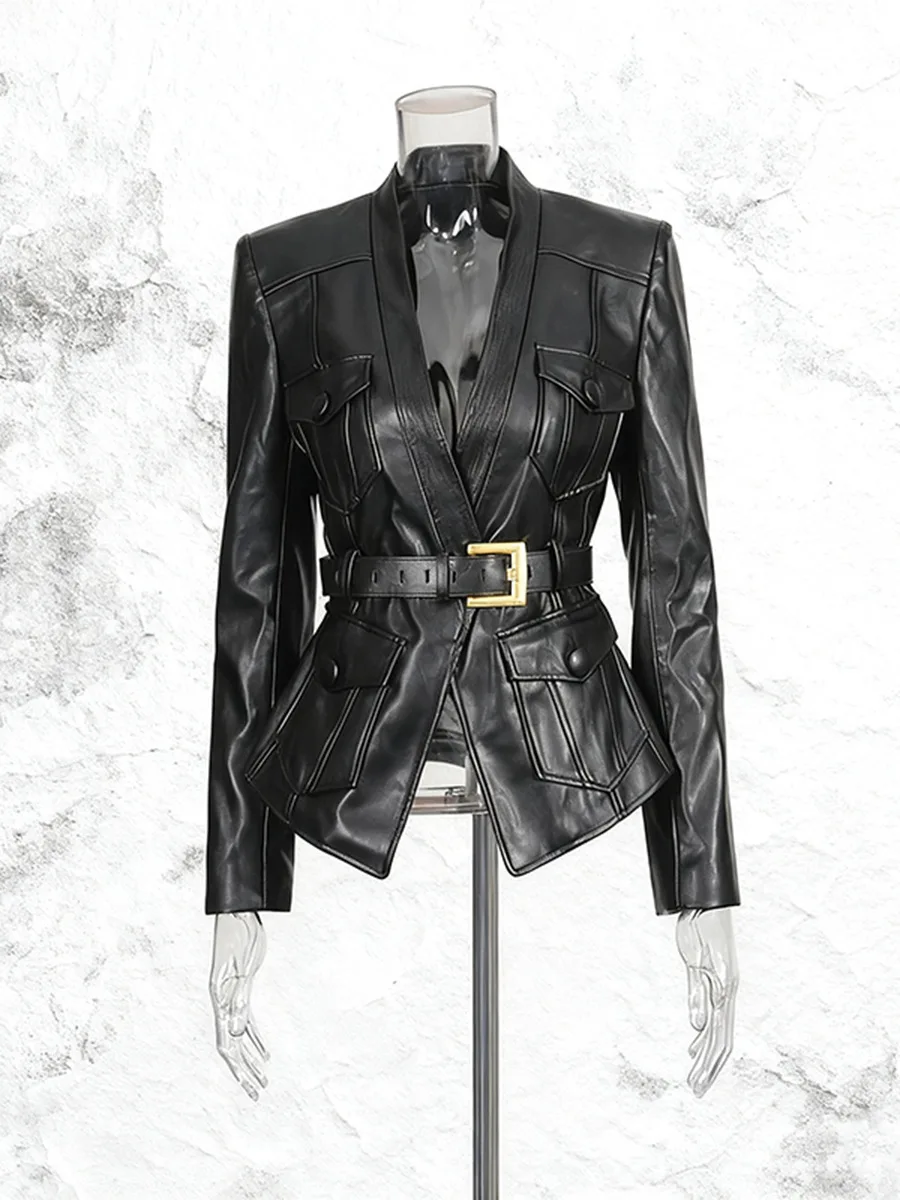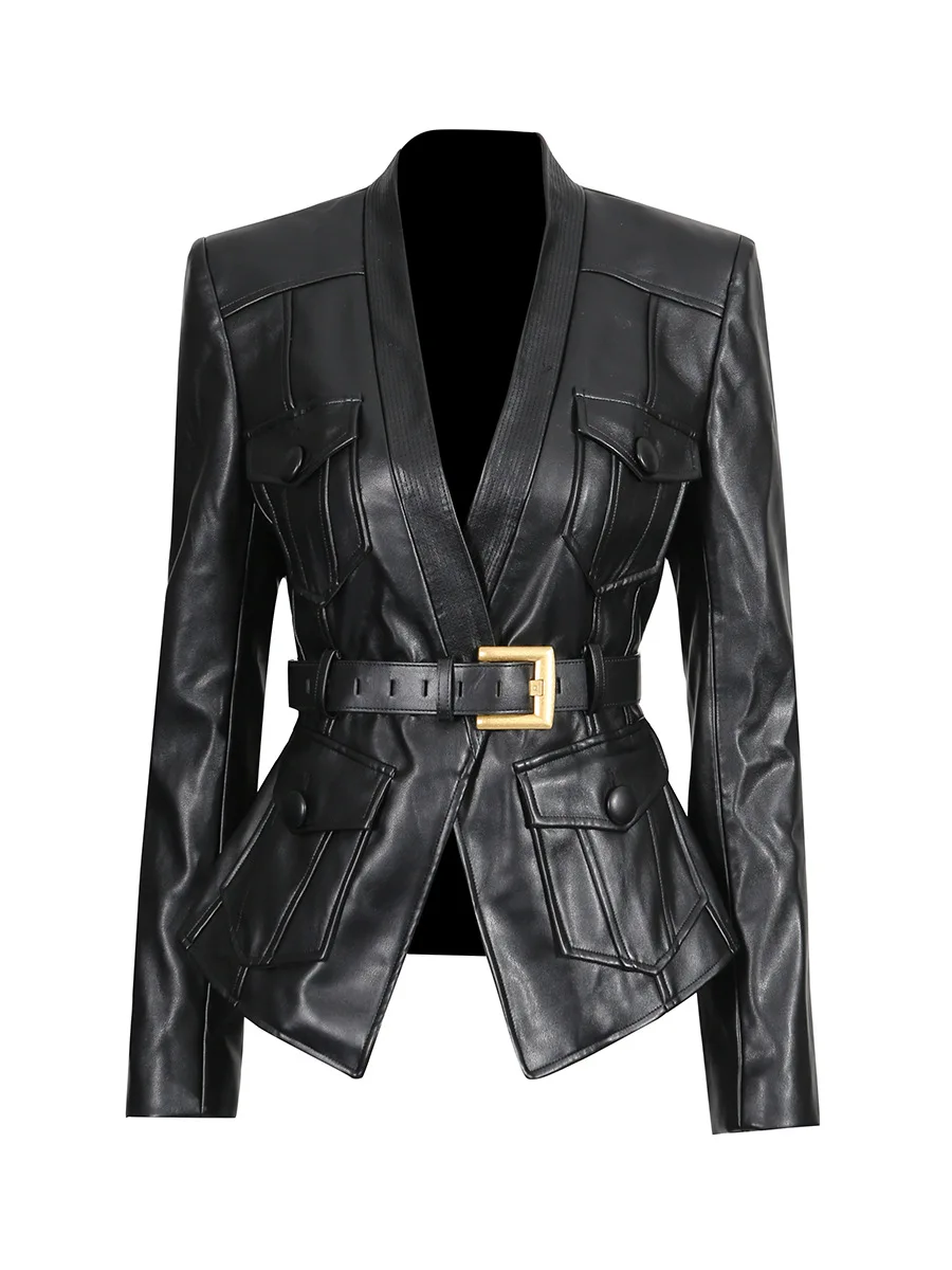 Early Autumn New European American Style Metal Buckle Belted SlimFit BlazerStyle Jacket OEM ODM Customization