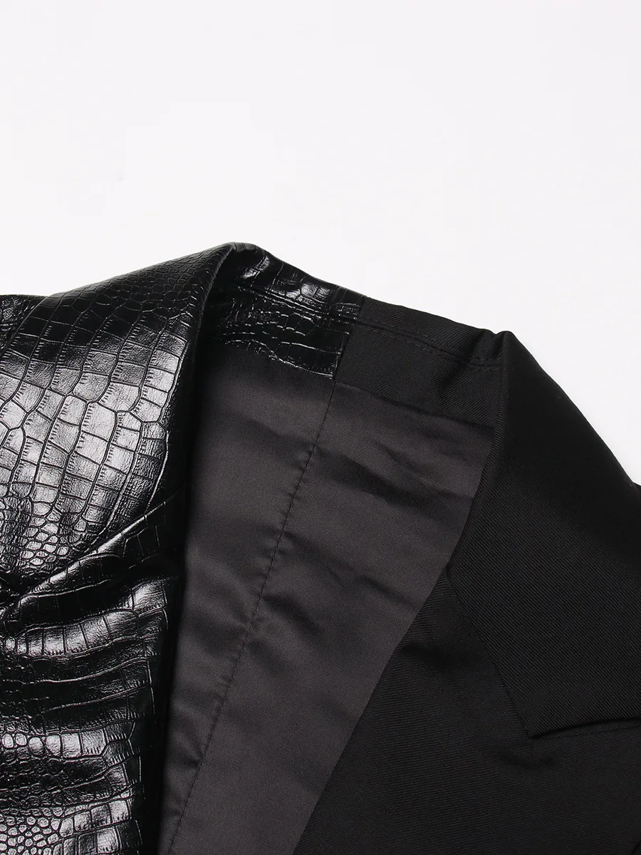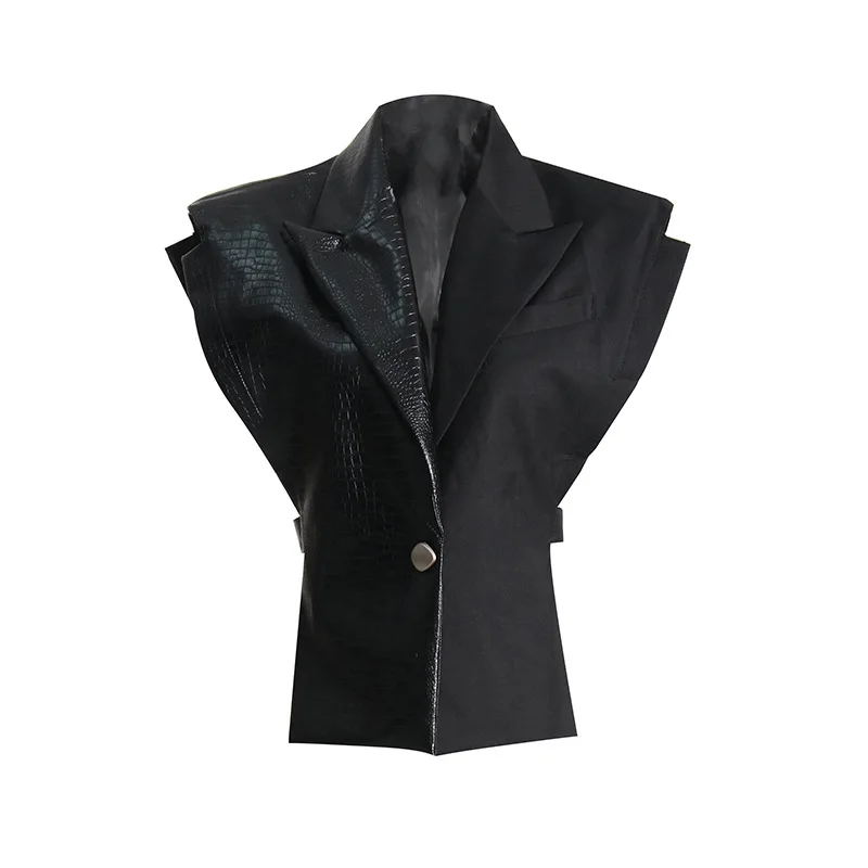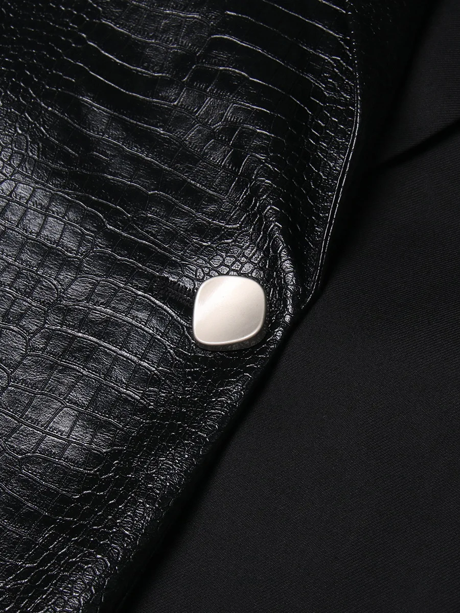 PU Crocodile Leather & PU Spliced Adjustable Minimalist Fashion Waistcoat