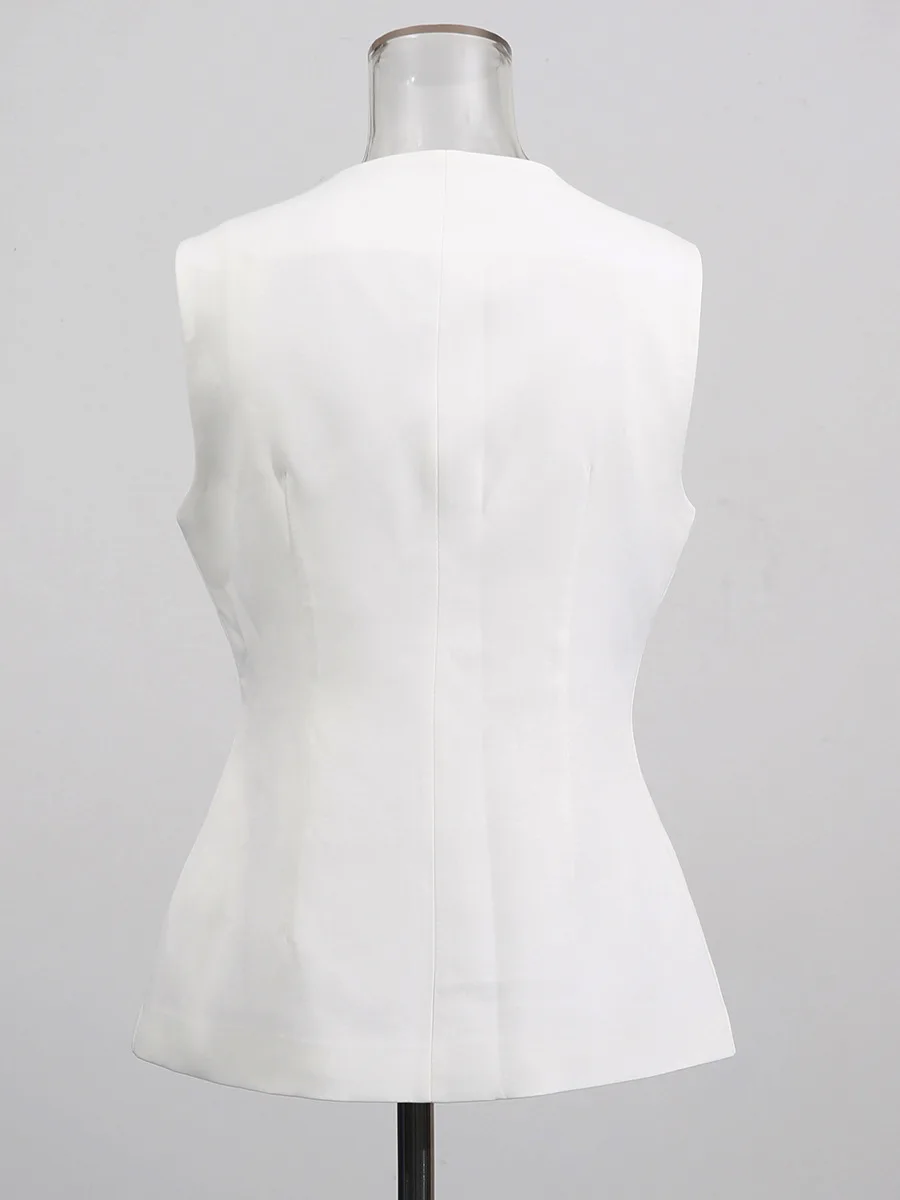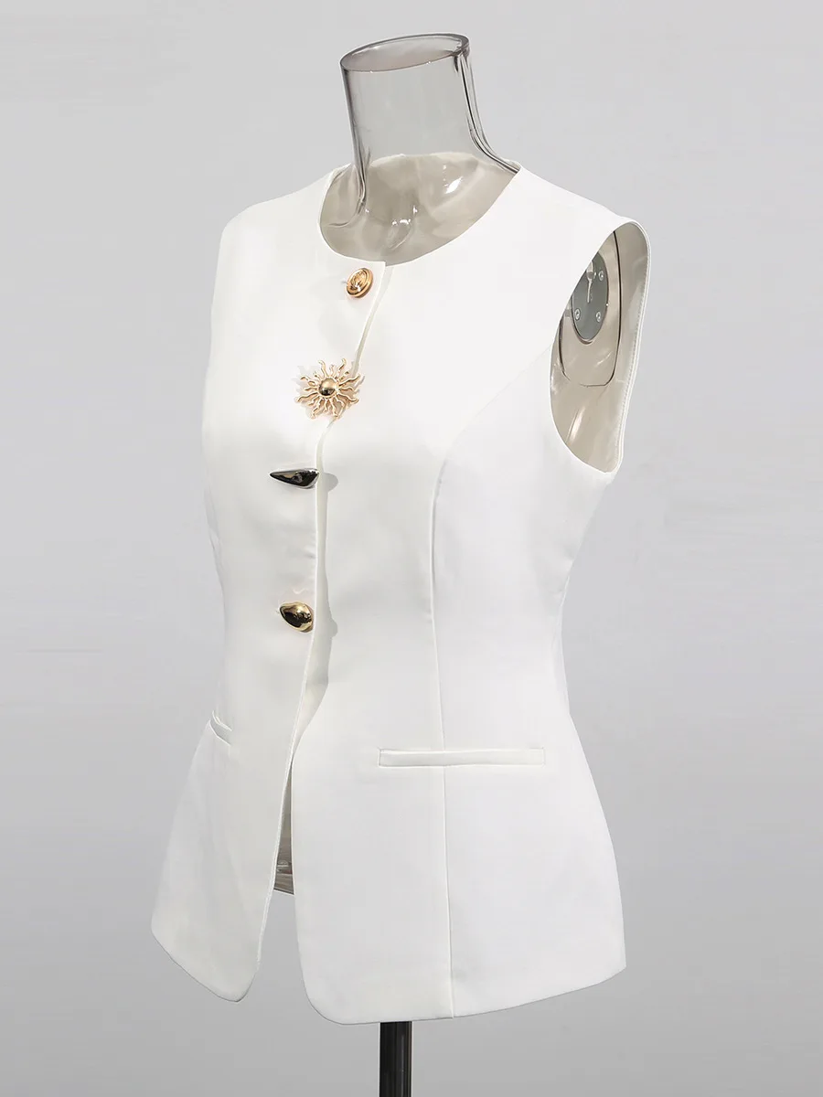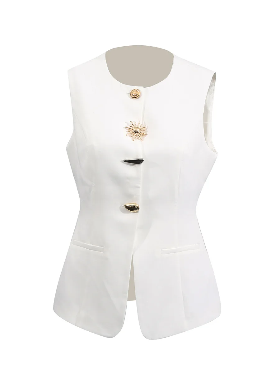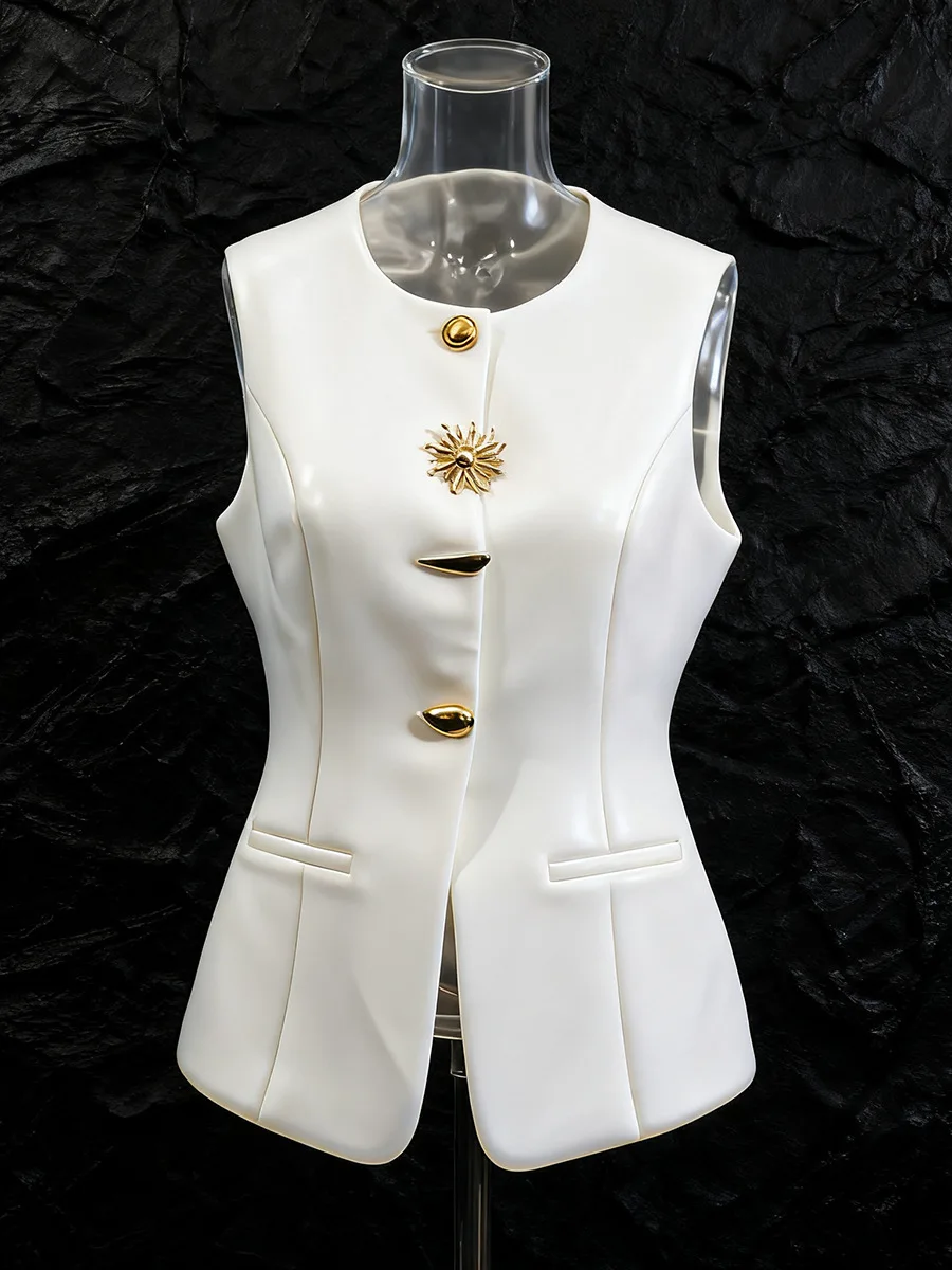 Women's Casual Fashion French Retro Metal-button Waist-cinched Sleeveless Vest, Light Luxury Niche High-fashion Elegant