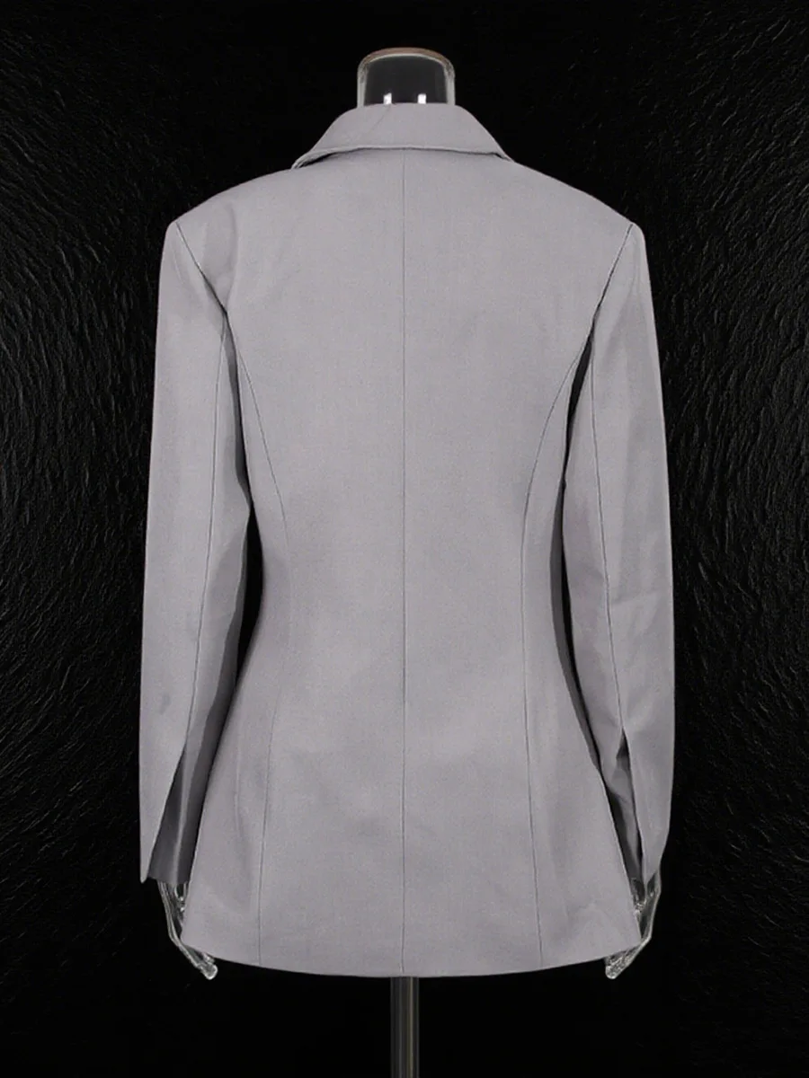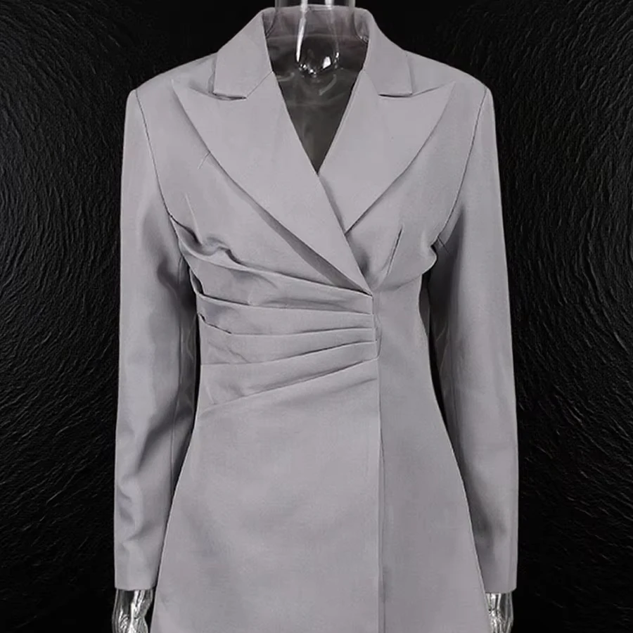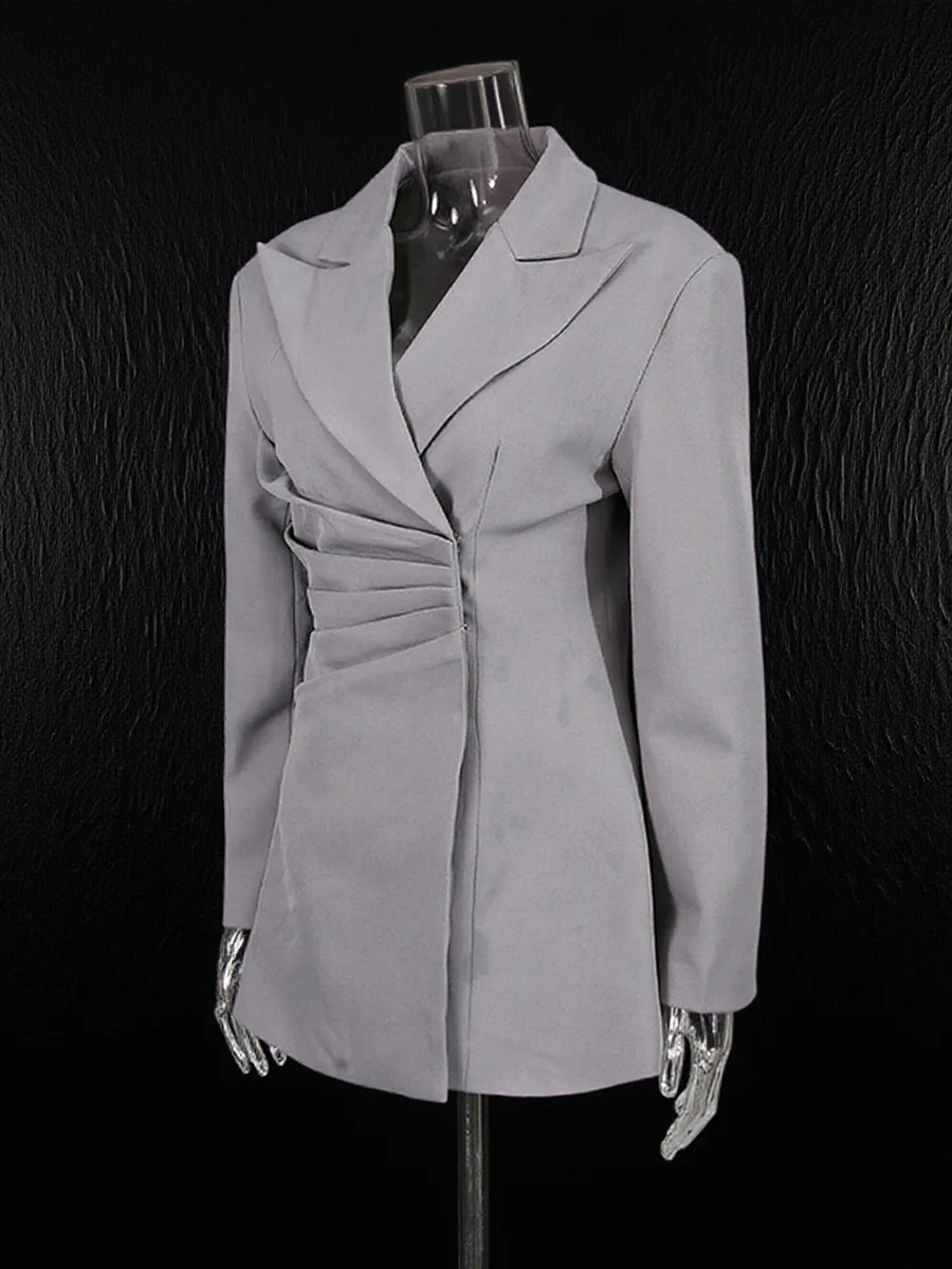 Women's High-End Ruched Waist Blazer Avant Garde Oversized Shoulder Tailored Suit Jacket