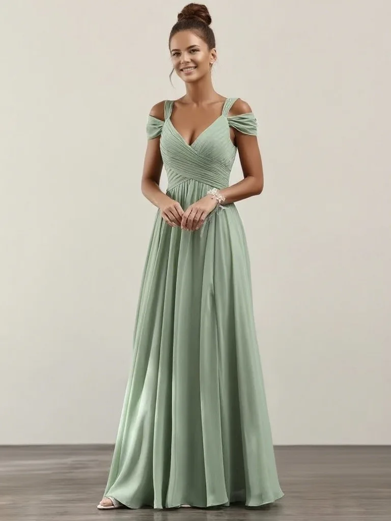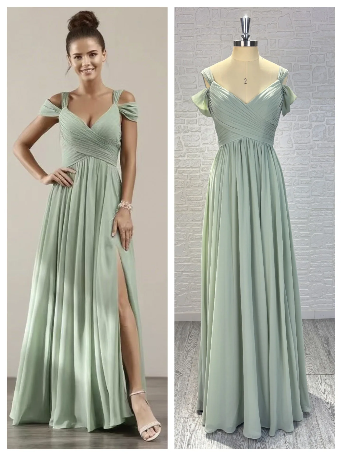 Off Shoulder Ruched Bridesmaid Gown with High Slit - Sexy Waist - Cinched European and American Style