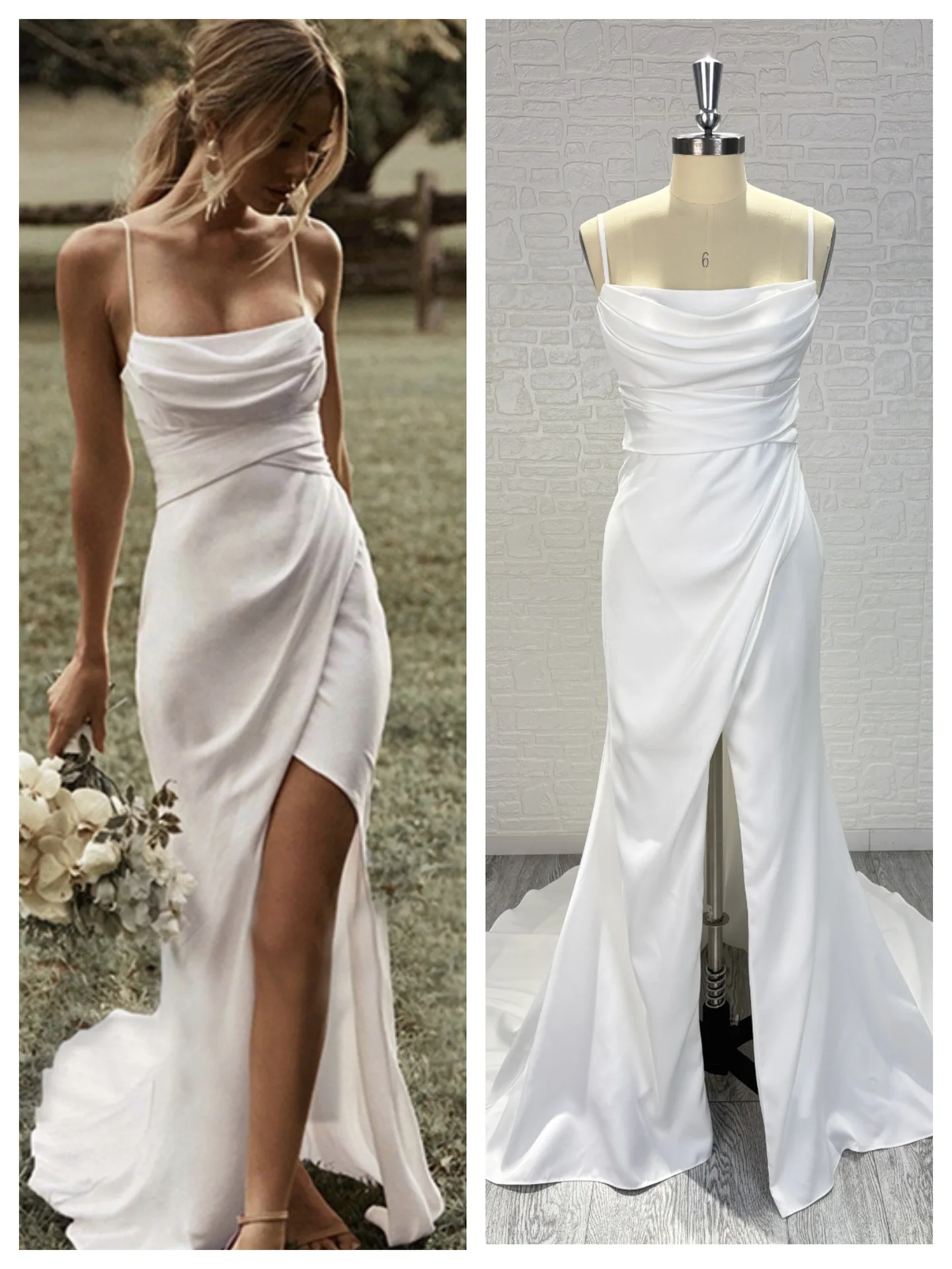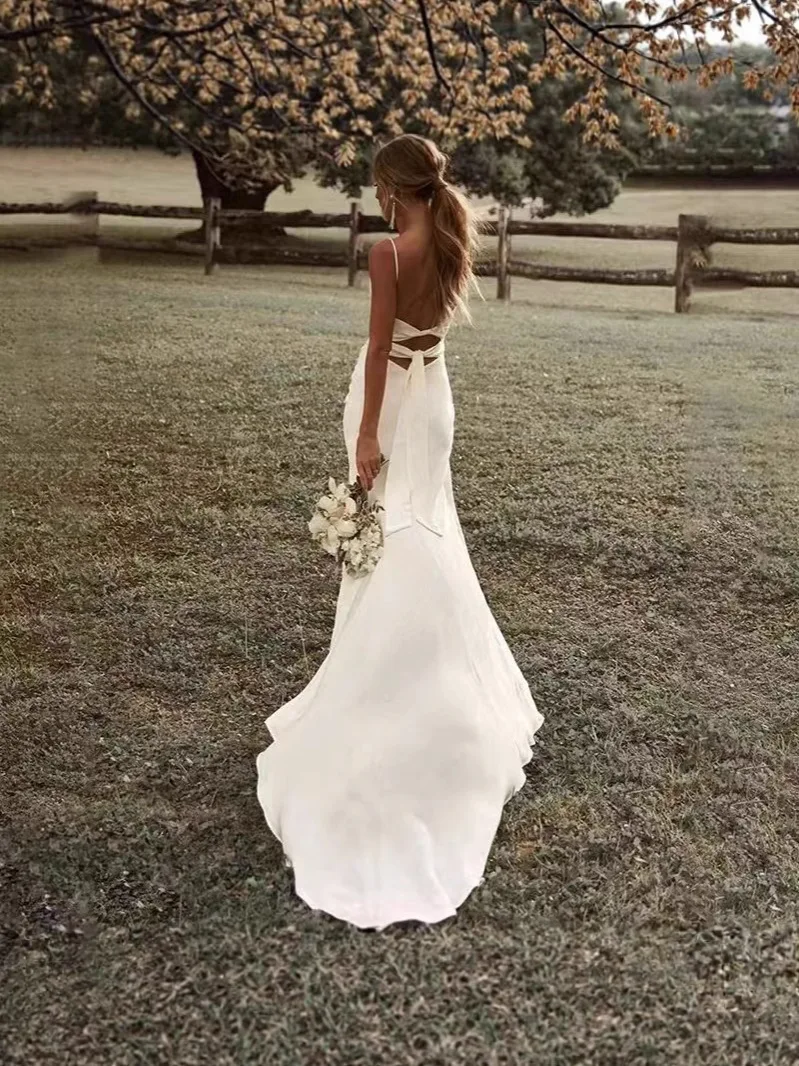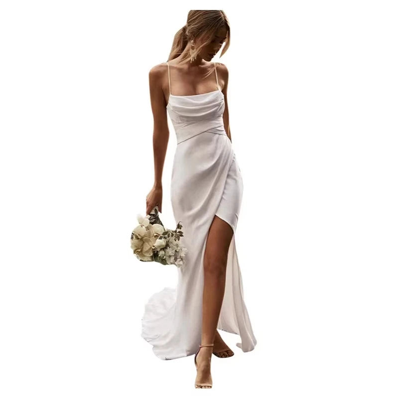 Sexy Slim Fit Spaghetti Strap Bridal Dress High Slit Backless Train Design Minimalist Elegance for Destination Weddings European