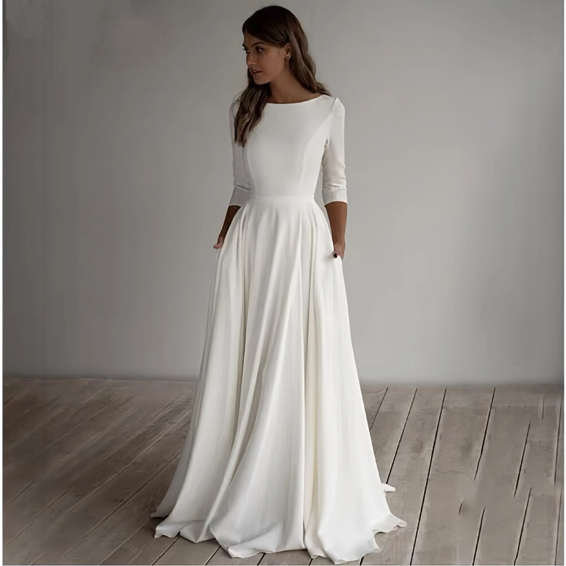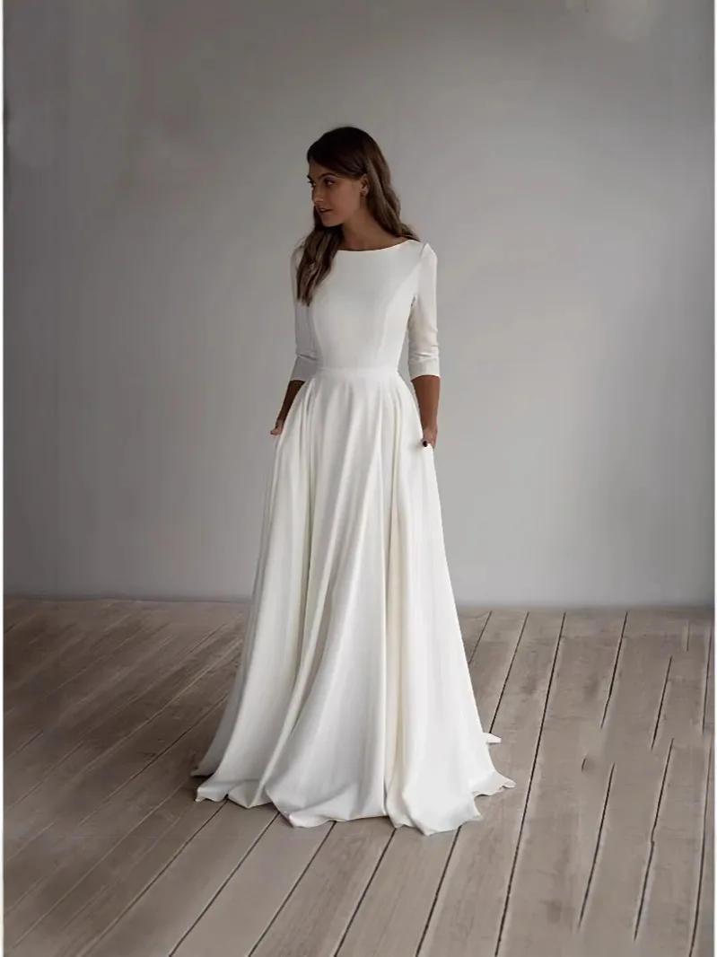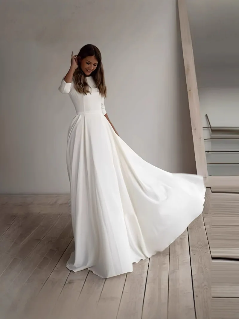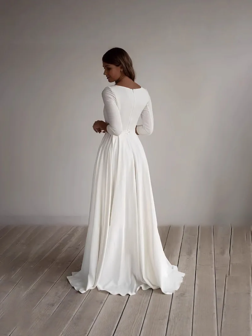 White Long - Sleeve Round Neck Ball Gown Dress Wedding Bridal Gown Offering Customization Service Ball Gown Wedding Dress