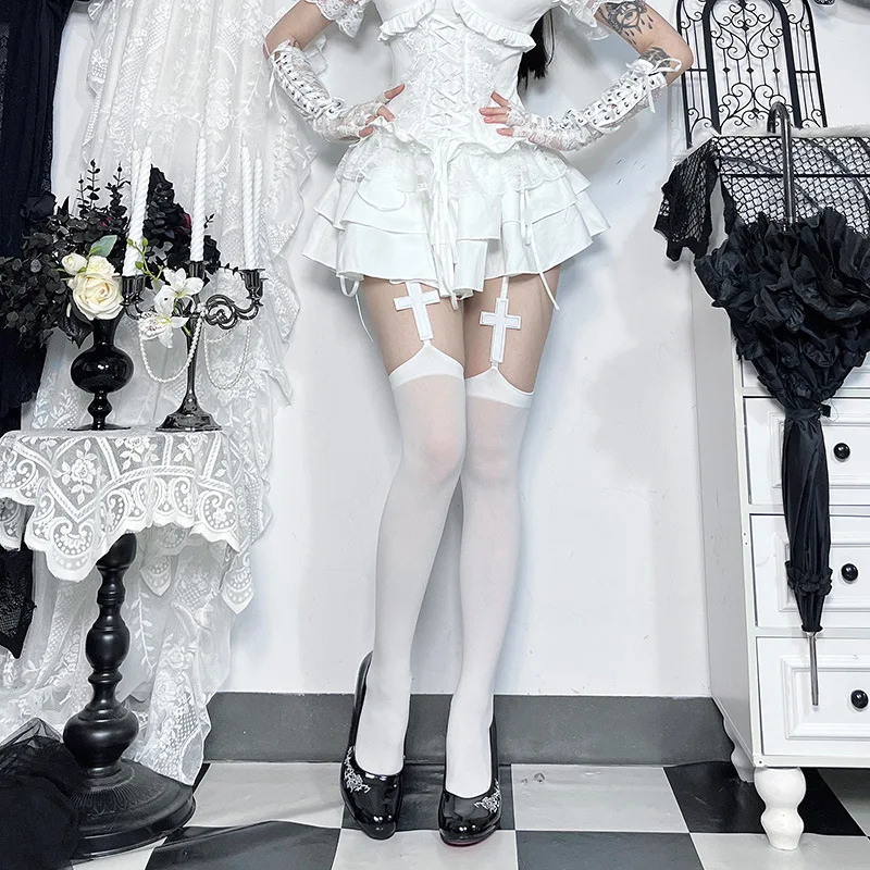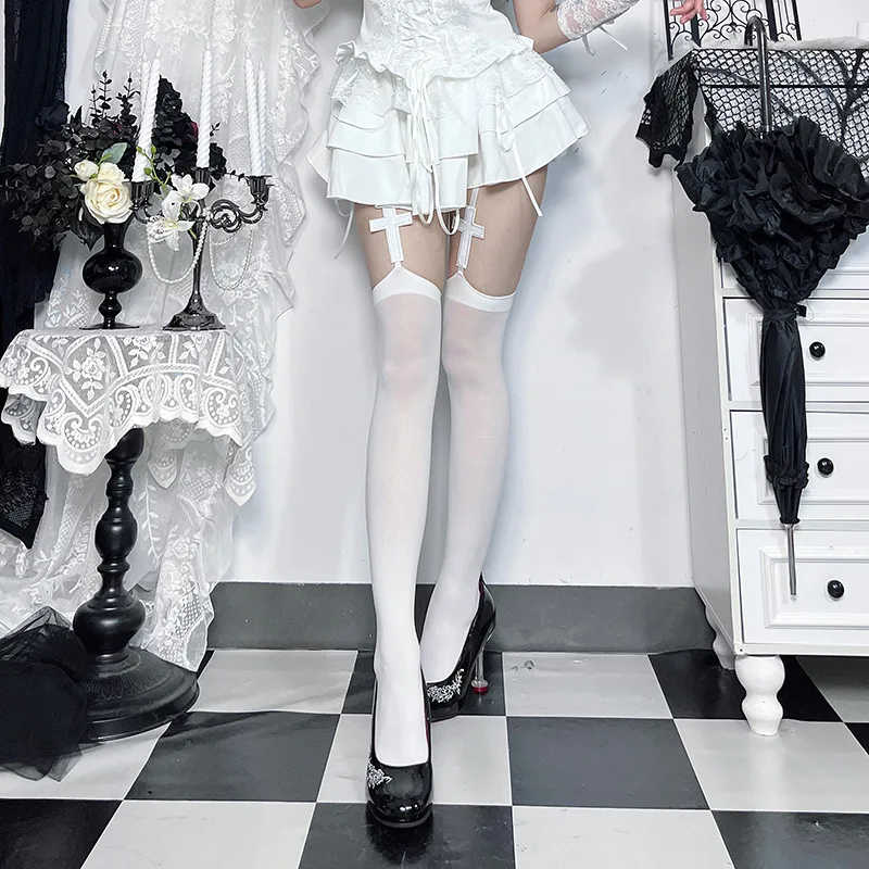 Punk Garter Stockings Gothic Cross Embellished Thigh High Socks