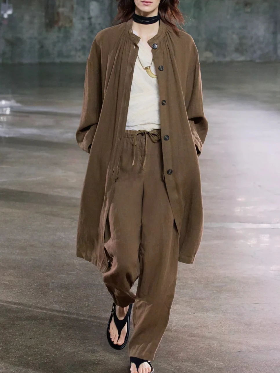 Oem Oem Custom Womens Linen Two Piece Set Belted Jacket Pants Casual Business Small Batch City Roaming Linen Set