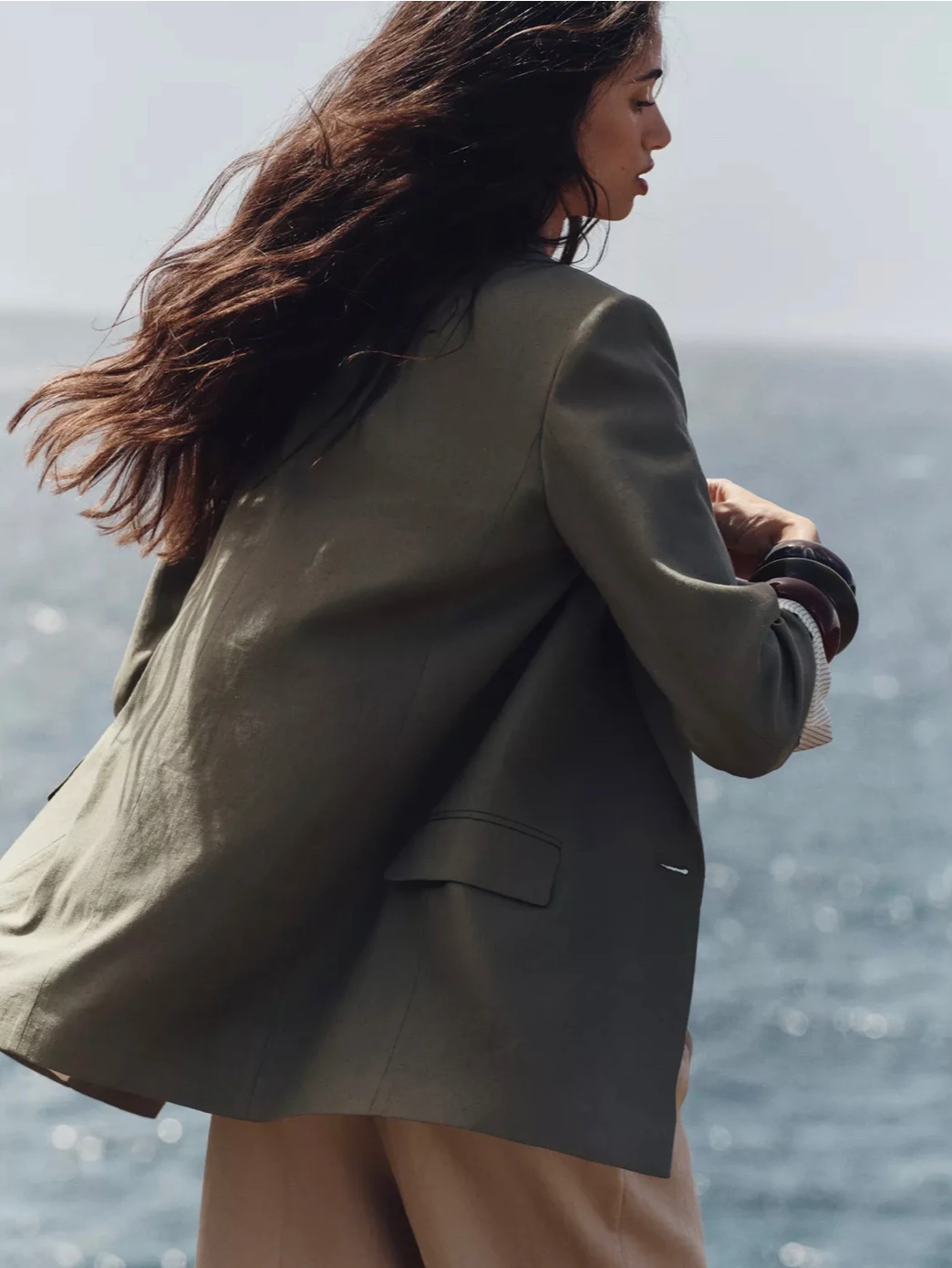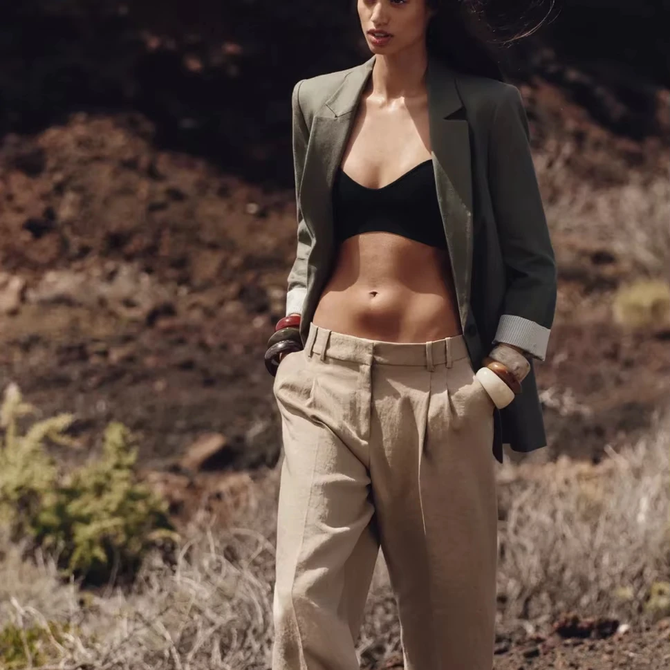Oem Odm Manufacturer Custom Women Olive Green Lapel Collar Long Sleeve Minimalist Blazer
