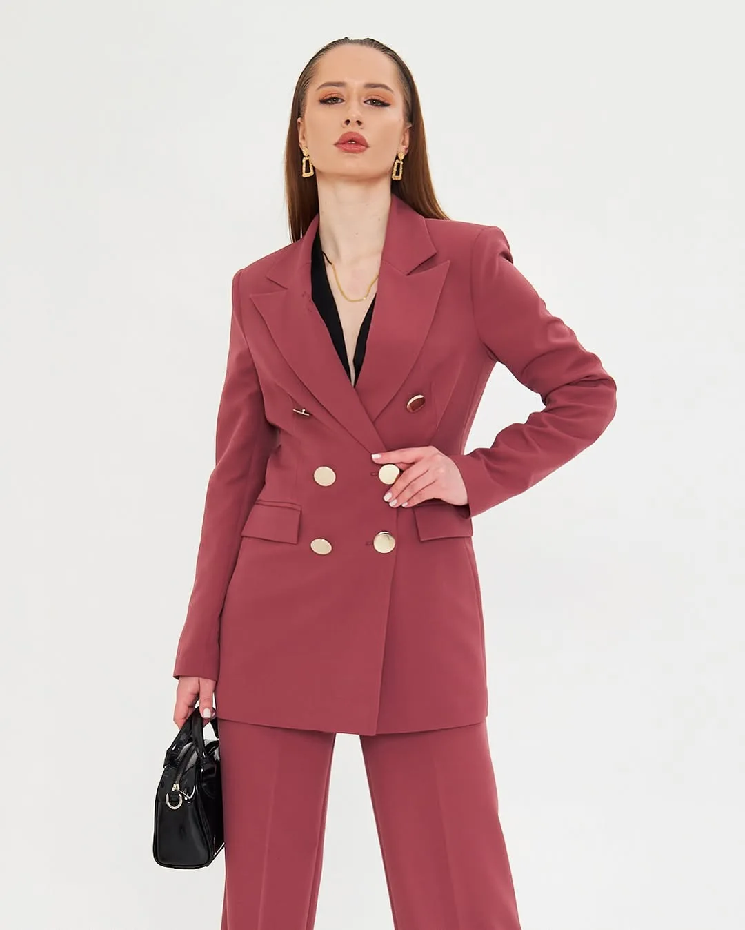 OEM ODM Manufacture Women's Double Breasted Suit Sets Elegant Office Lady Premium Quality Burgundy Lady Suit Blazer Pants Set