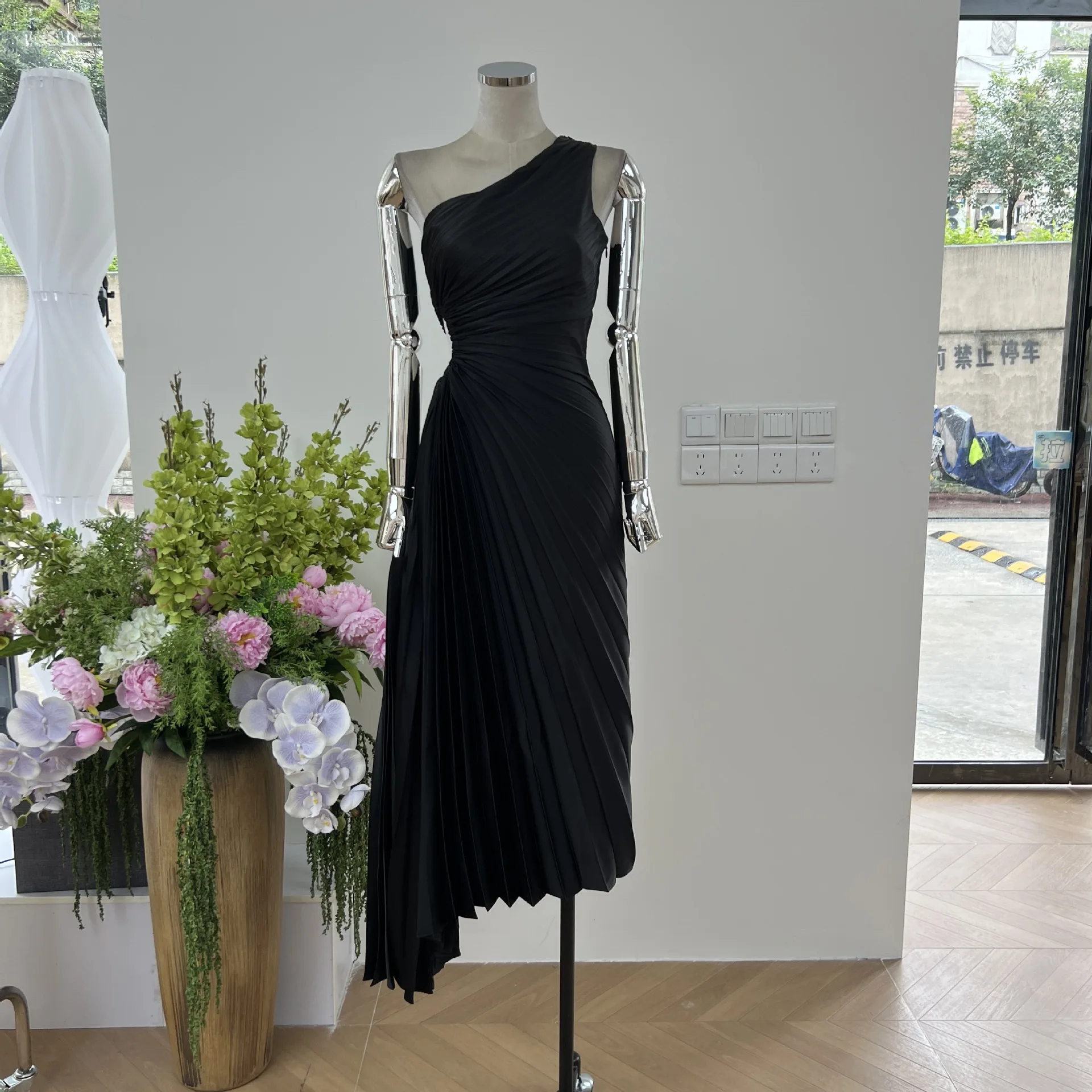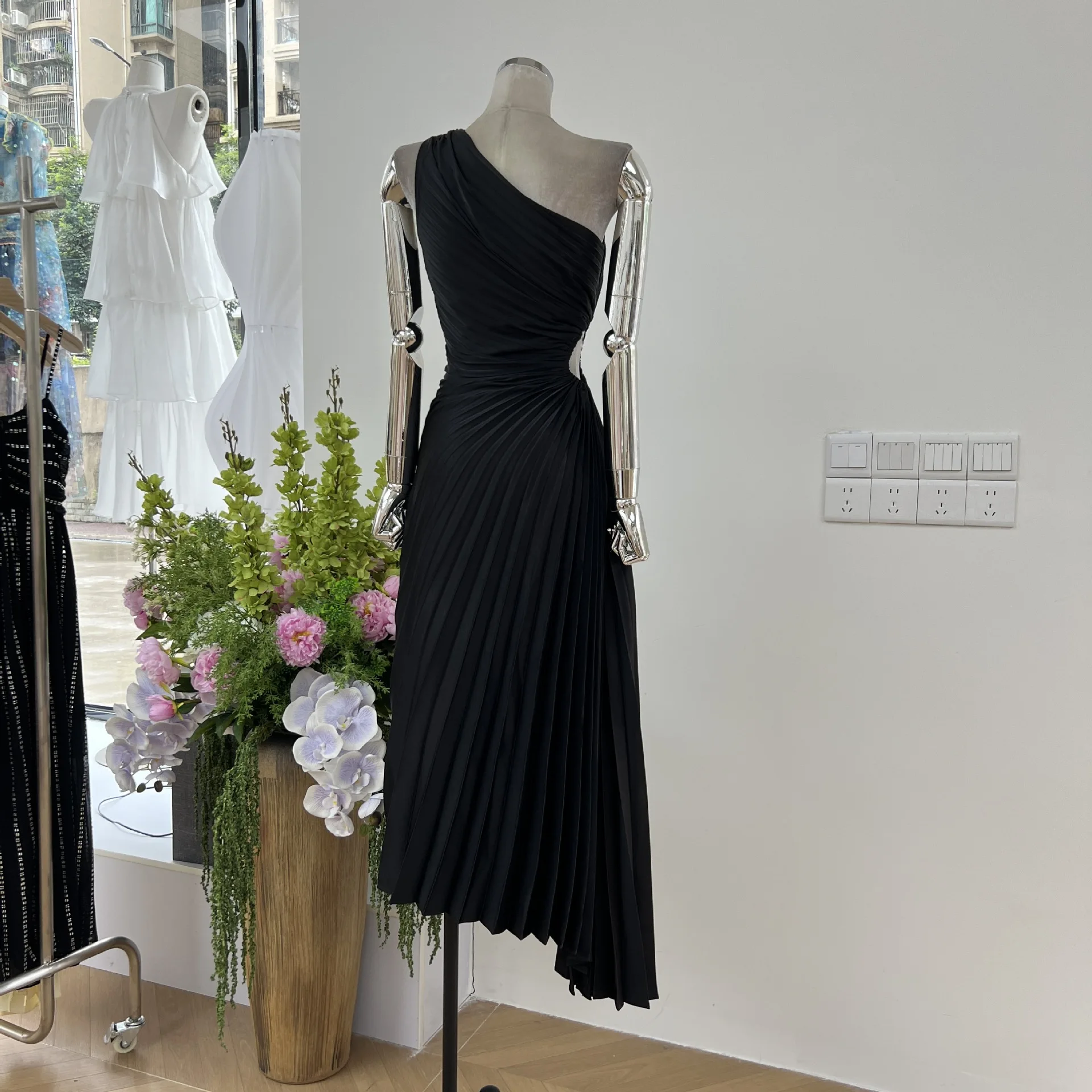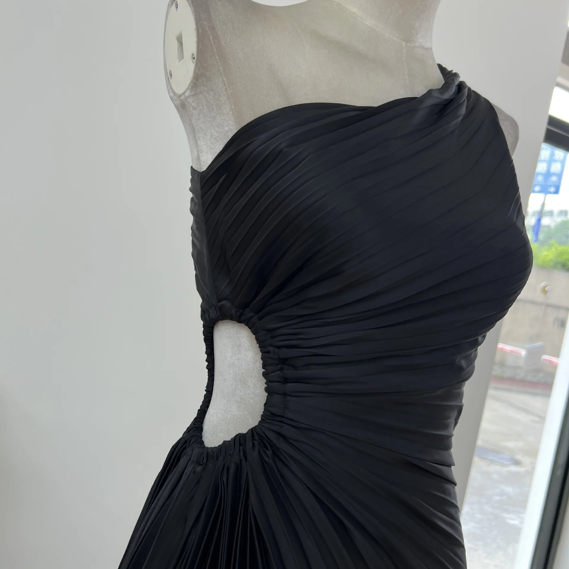 Custom Made One Shoulder Cutout Pleated Evening Cocktail Party Dress Asymmetric Hem Party Gown