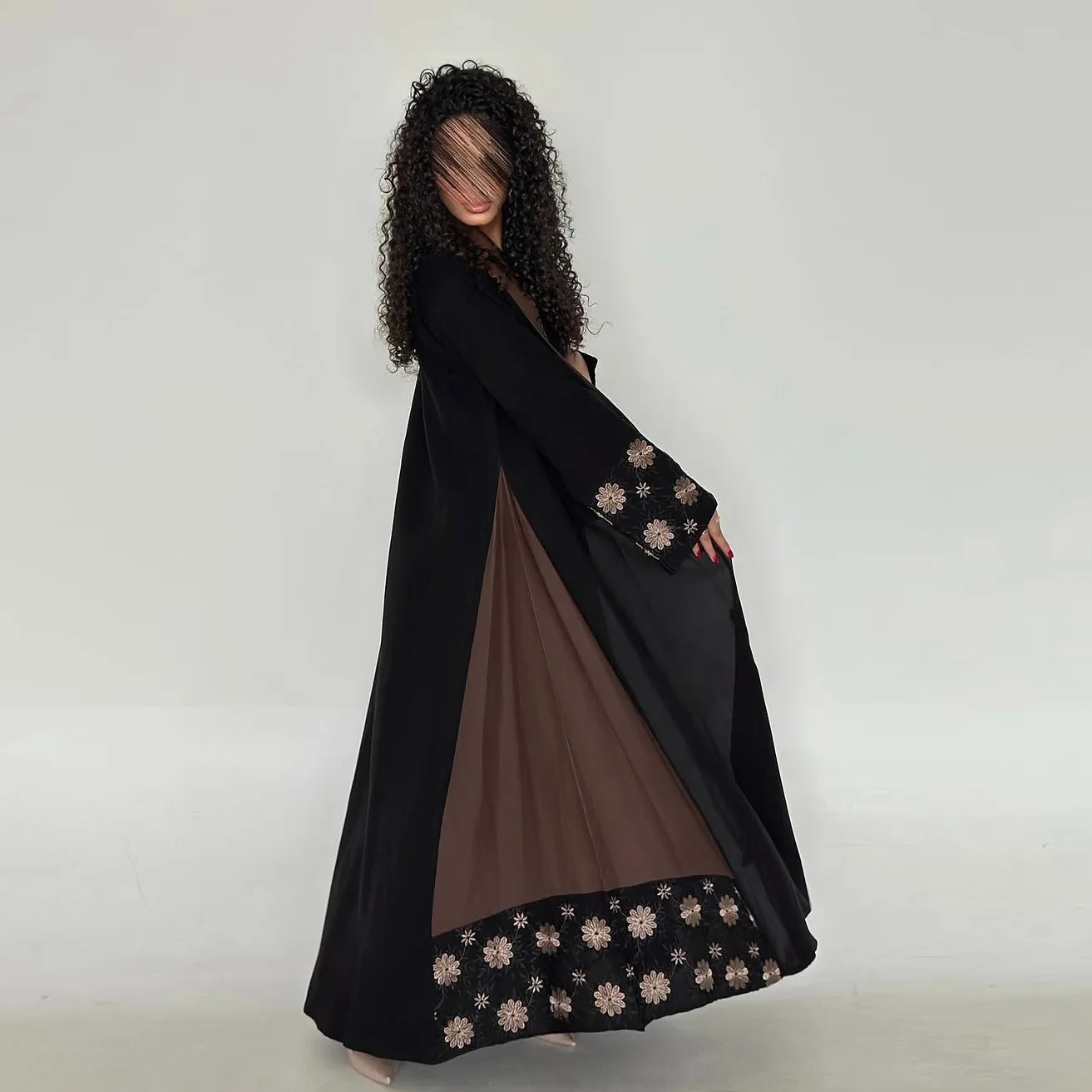 2026 New Middle East Dubai Muslim Fashion Abaya Long Cardigan Coat with Embroidered Cuffs and Hem Modest Abaya