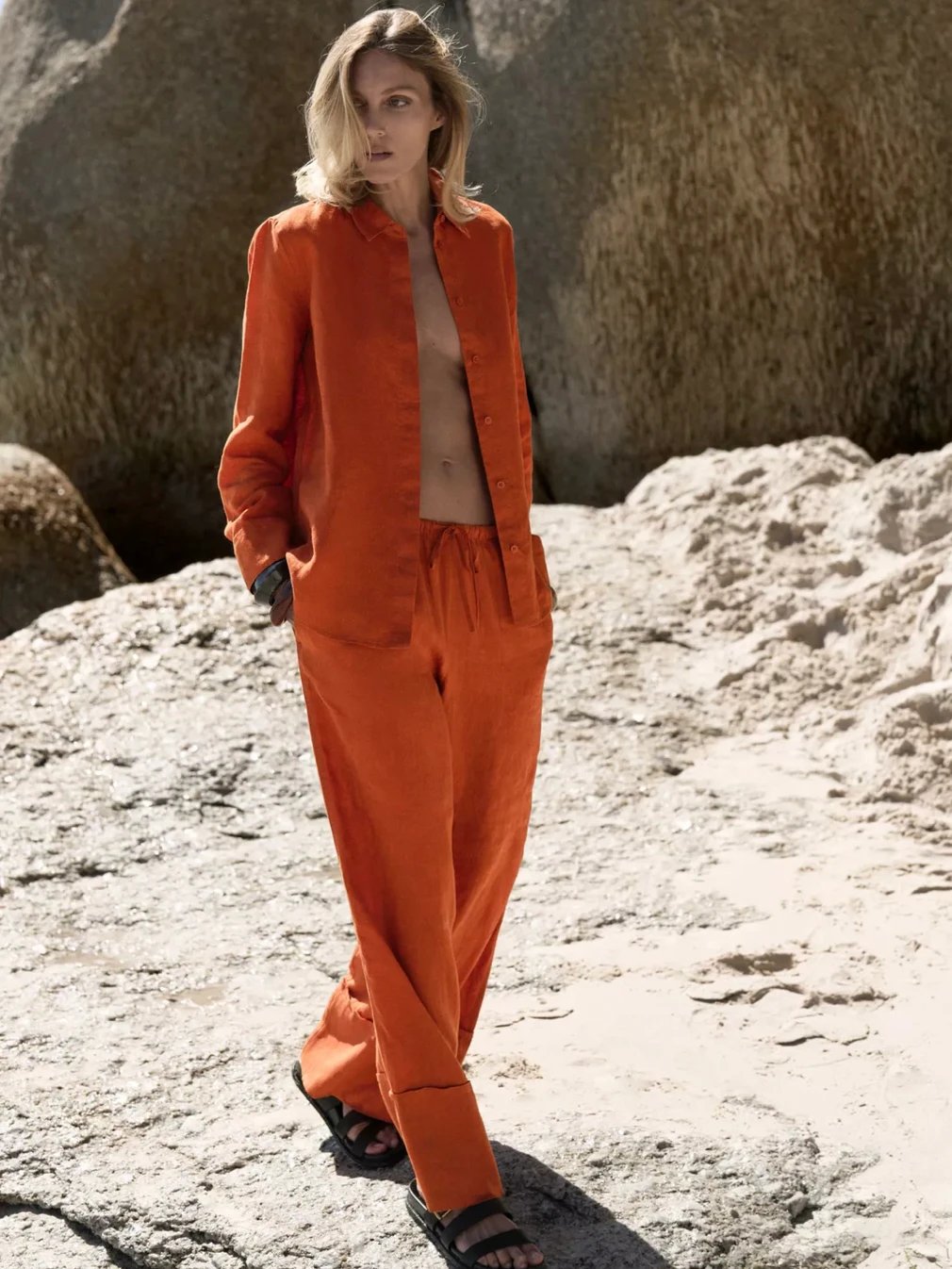 Oem Oem Custom Summer Linen Casual Outfit Set Loose Long Sleeve Shirt Wide Leg Pants Wholesale Women's ZW Collection