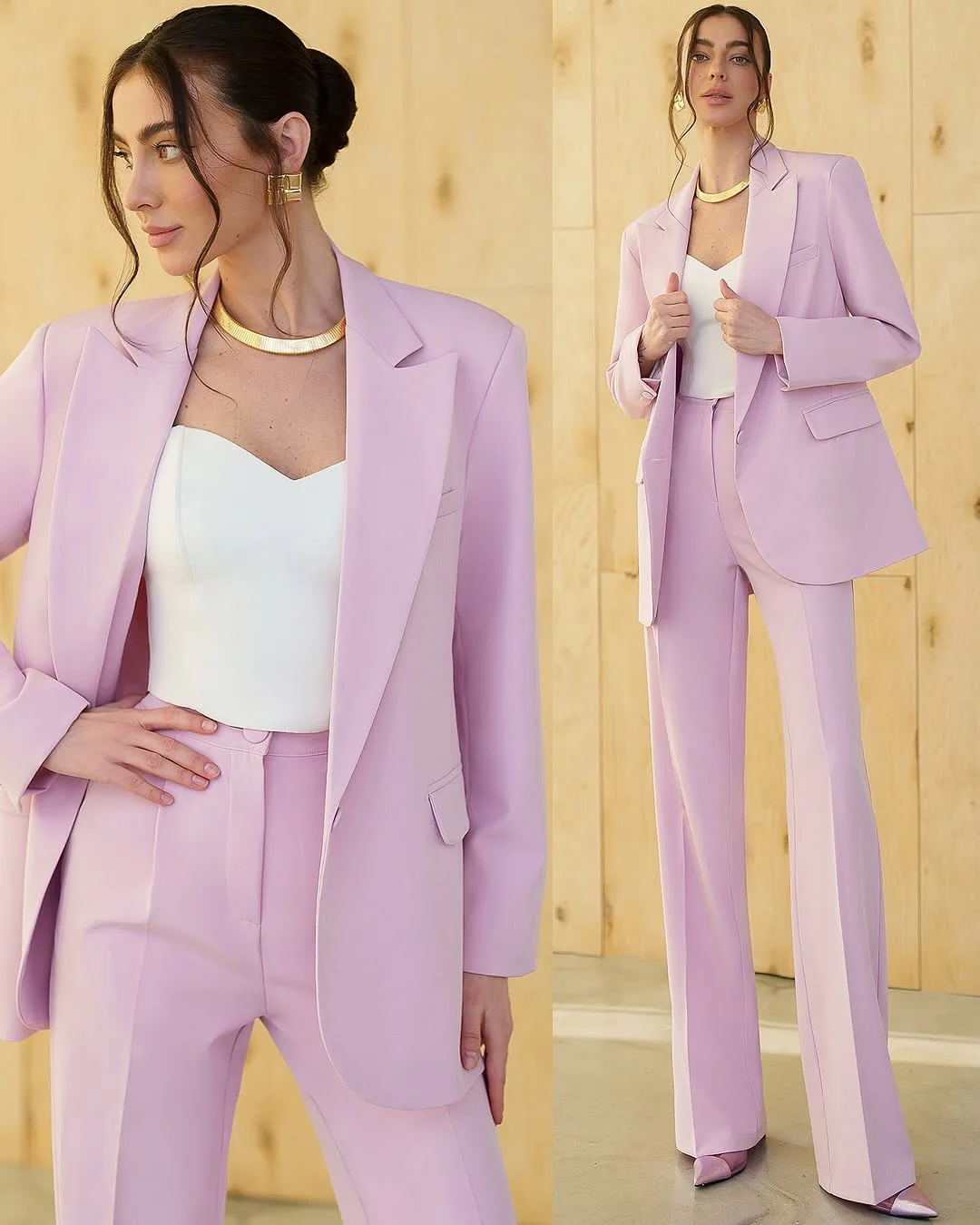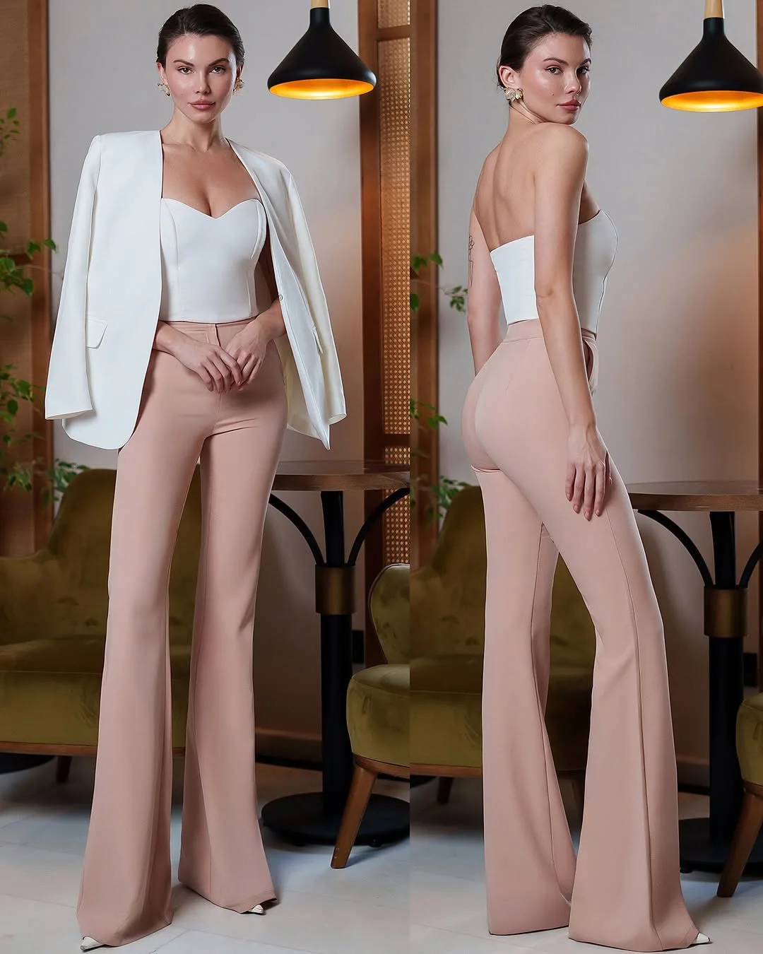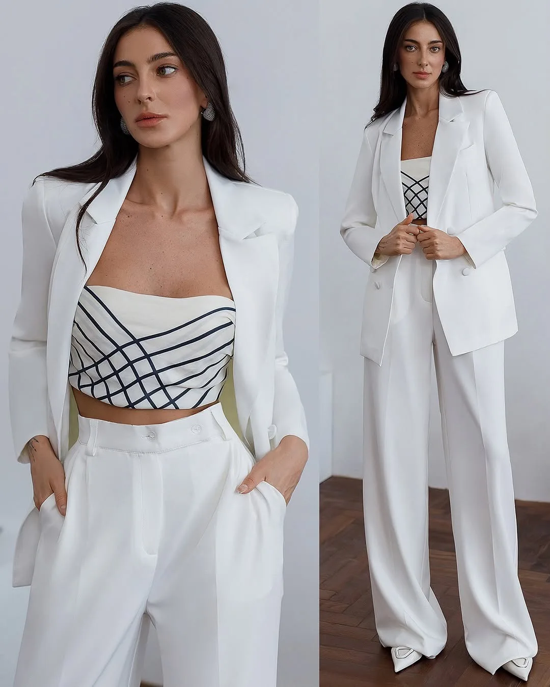 Oem Odm Custom High Quality Elegant French Square Collar Buckle Wide Leg Pants Suit Office Ladies 2 Piece Sets China