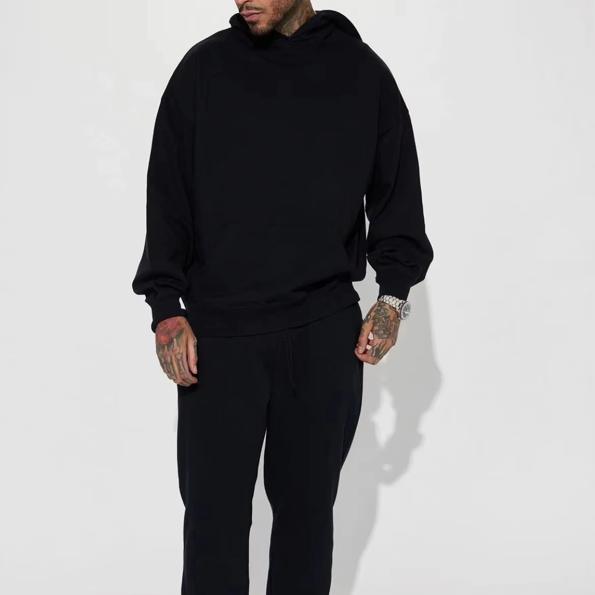 Black Hoodie with Printing Oversized Fit Made of 100% Cotton Featuring a Hood and Pockets Hoodies Men's Oversized Blank Hoodie
