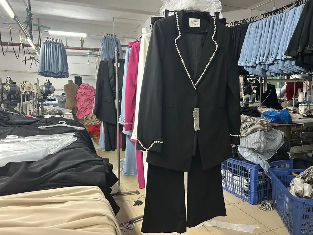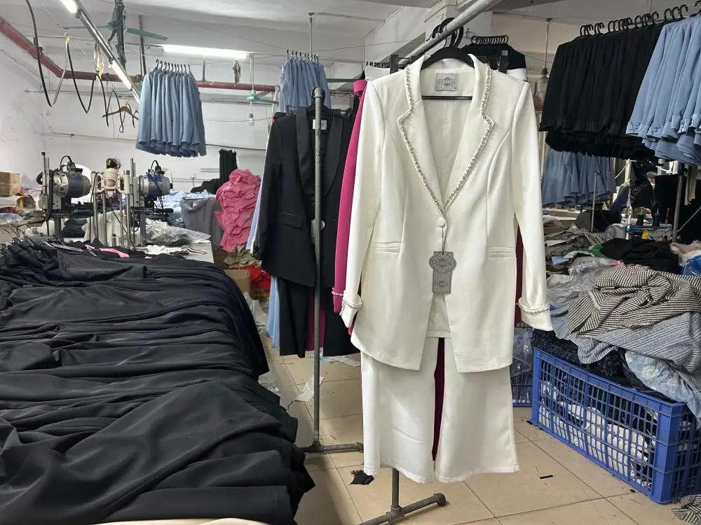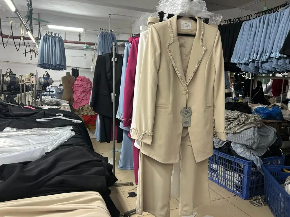 Oem Odm Custom Slim Fit Professional Elegant Long Sleeved Diamond Luxury Commuting Suit Womens blazer Pants Set European Style