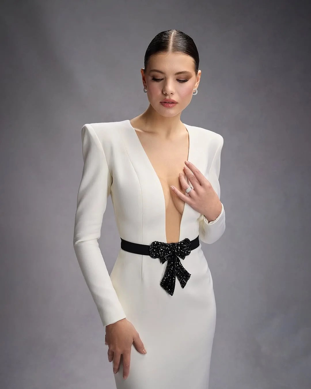 ZYHT 73906 Long Sleeve Deep V Neck High Slit Sexy Elegant Knot Long Floor Length 3D Flower Dark Green Purple Women Evening Dress