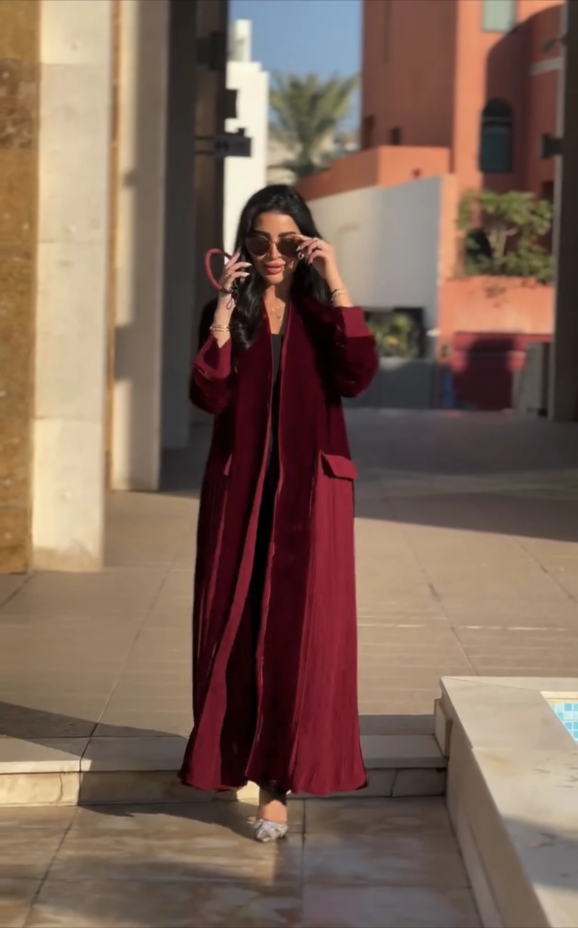 Suadi Dubai Oem Modest Fashion Muslim Abaya Custom Made Elegant Stylish Open Front Pleated Velvet Abaya for Women