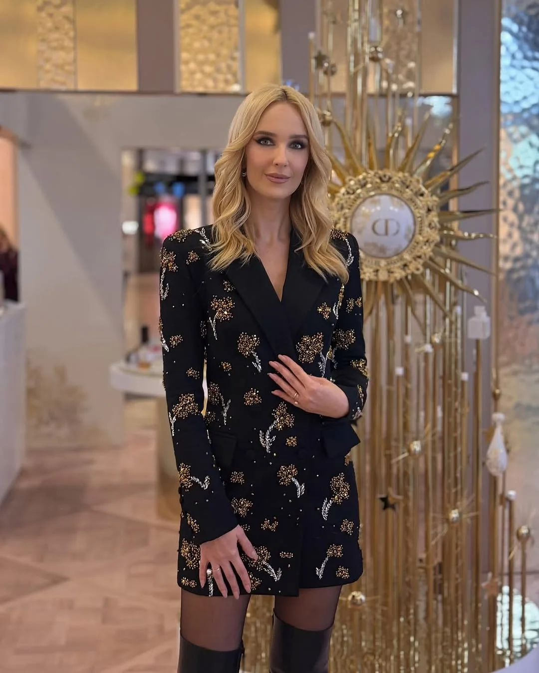 ZYHT 21938 Black Velvet Mini Dress Square Neck Long Puff Sleeves with Pearl Trim & Crystal Dess Flared Scalloped Hem Dresses