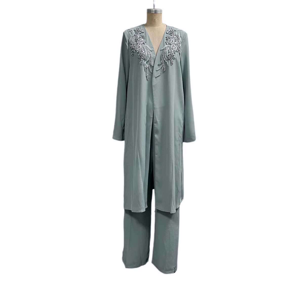 Elegant Embroidered Long - Coat Women's Suit Set Modest Open Abaya Hand Made Custom Oem Odm
