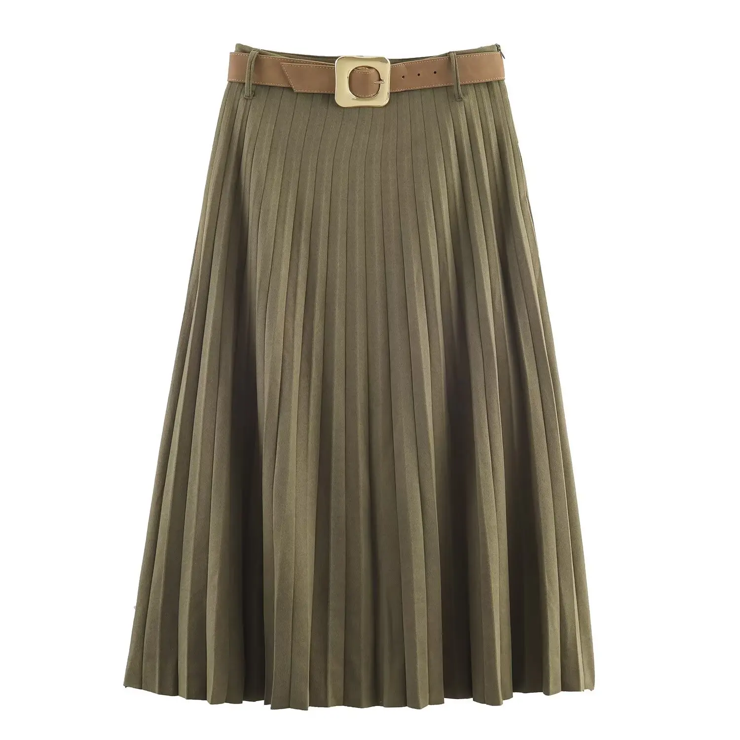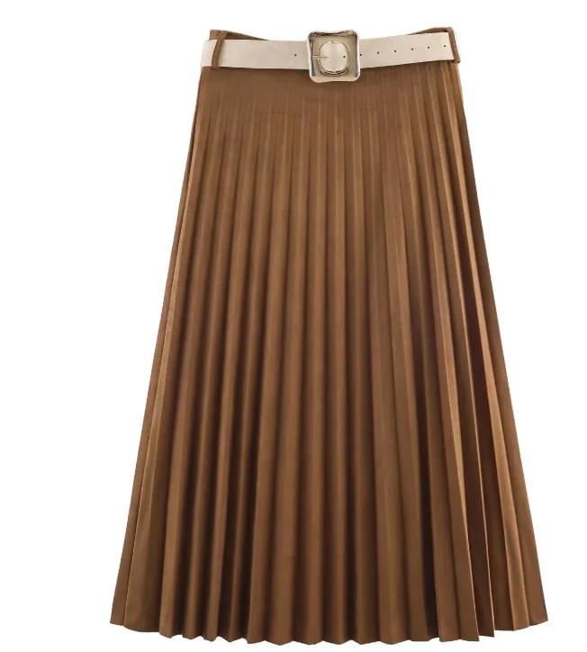 Women's Casual High Waist Pleated Midi Skirt with Ruffles 100% Polyester Autumn Fashion Anti-Static & Breathable