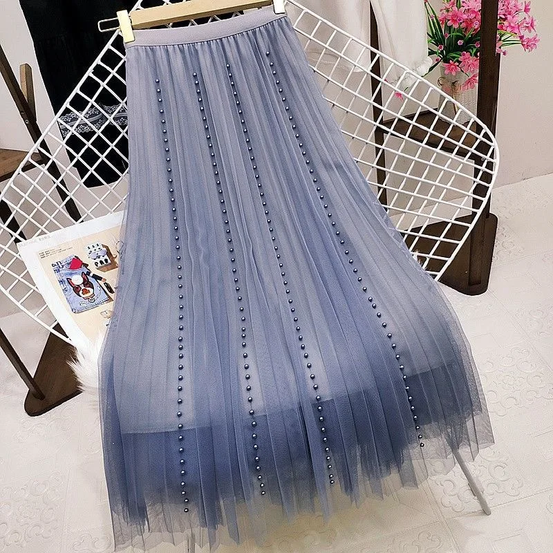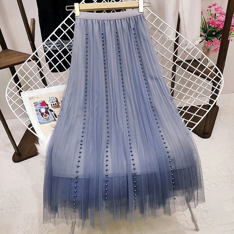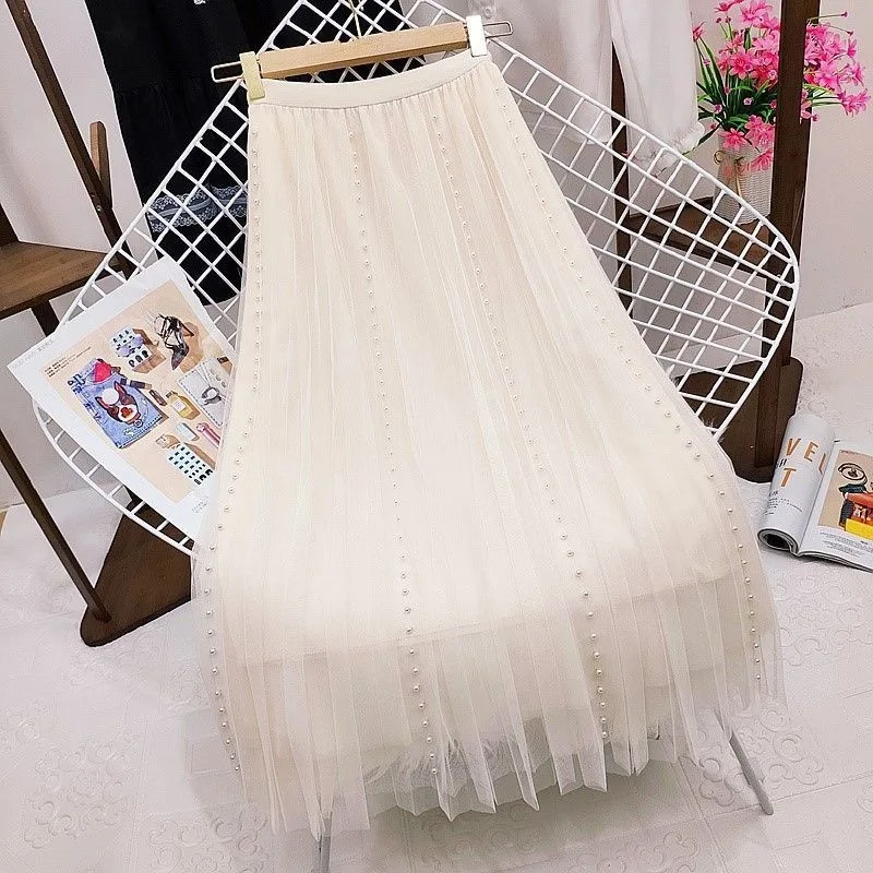 Y2k Goth Summer Black Crystal Mesh High Waist Tulle Skirt Flared High-quality Chineses Style Top for Women