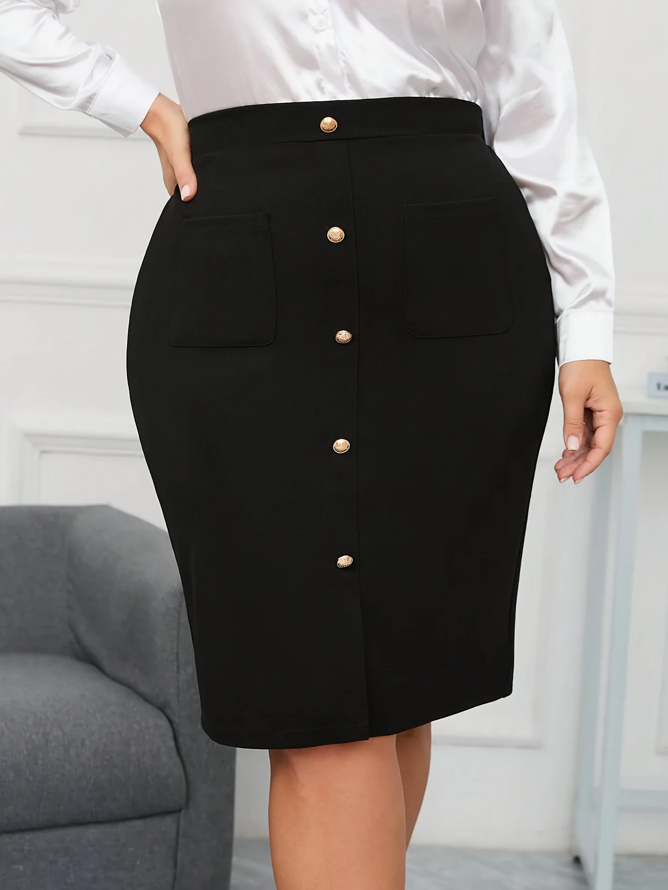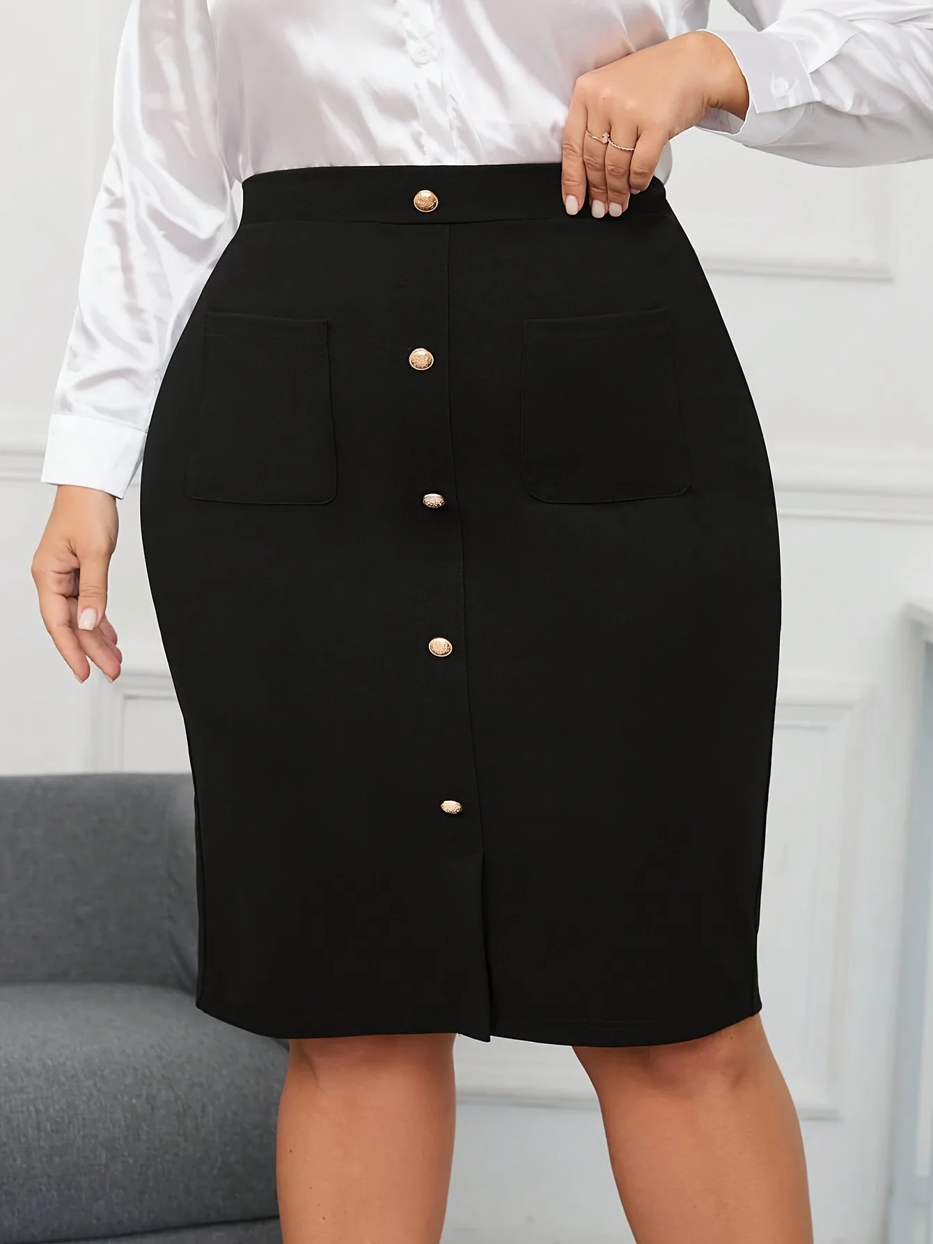 Summer New Fashion Elegant Versatile Natural Waist Solid Commuter Skirt Women European American Style Plus Size
