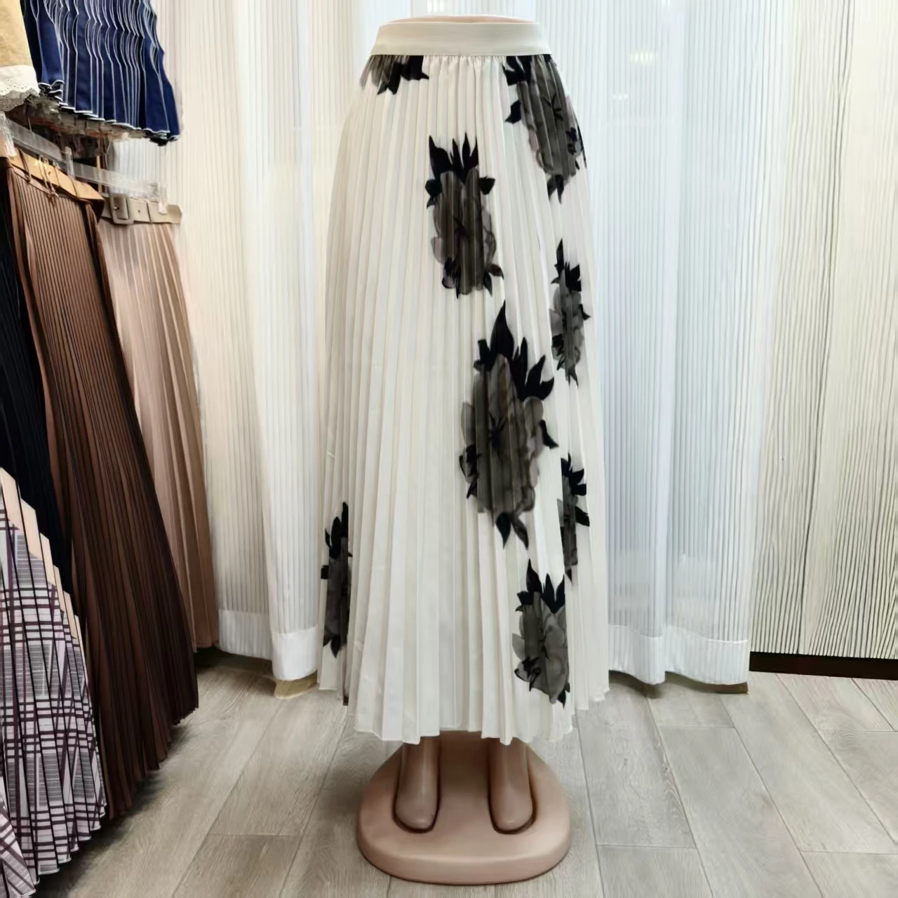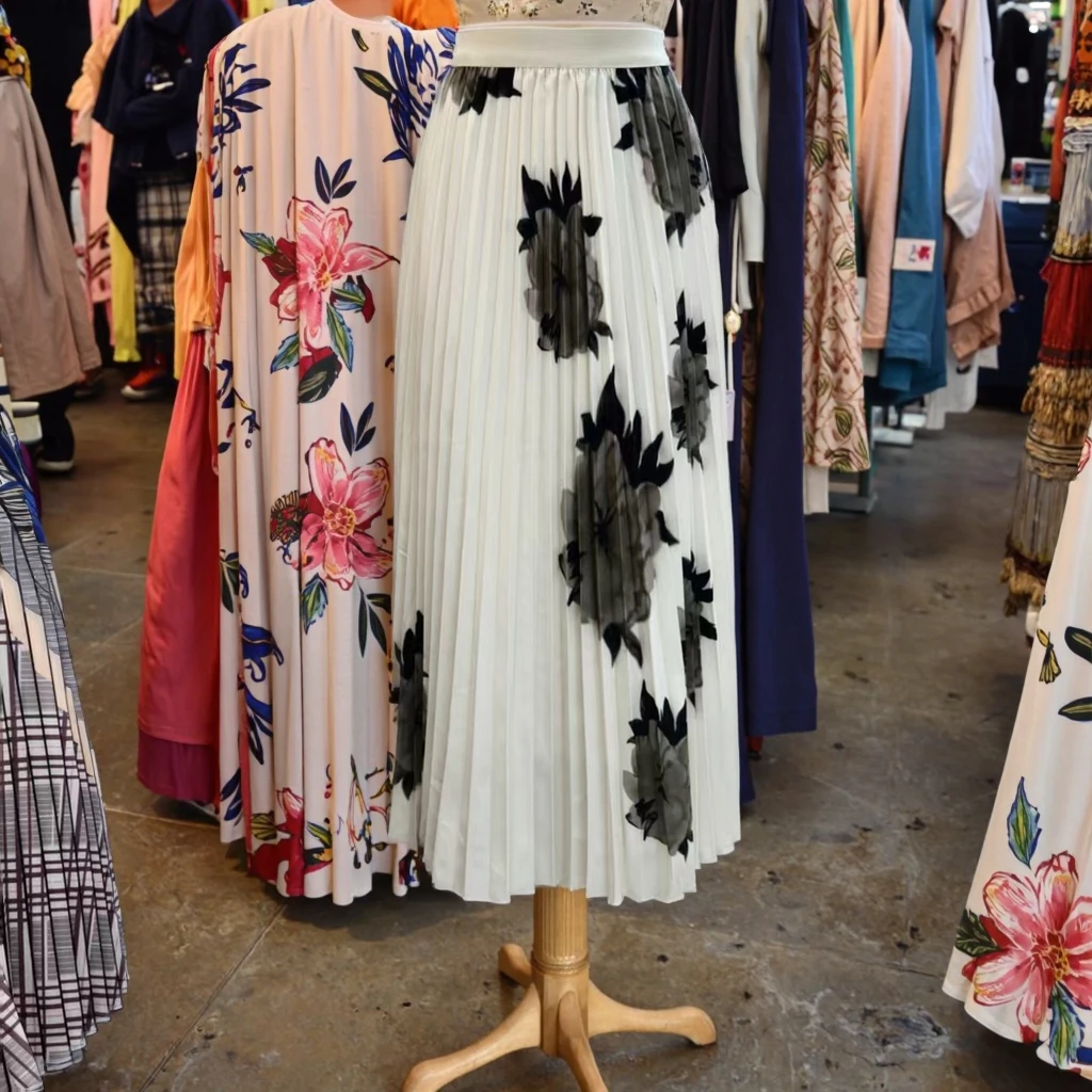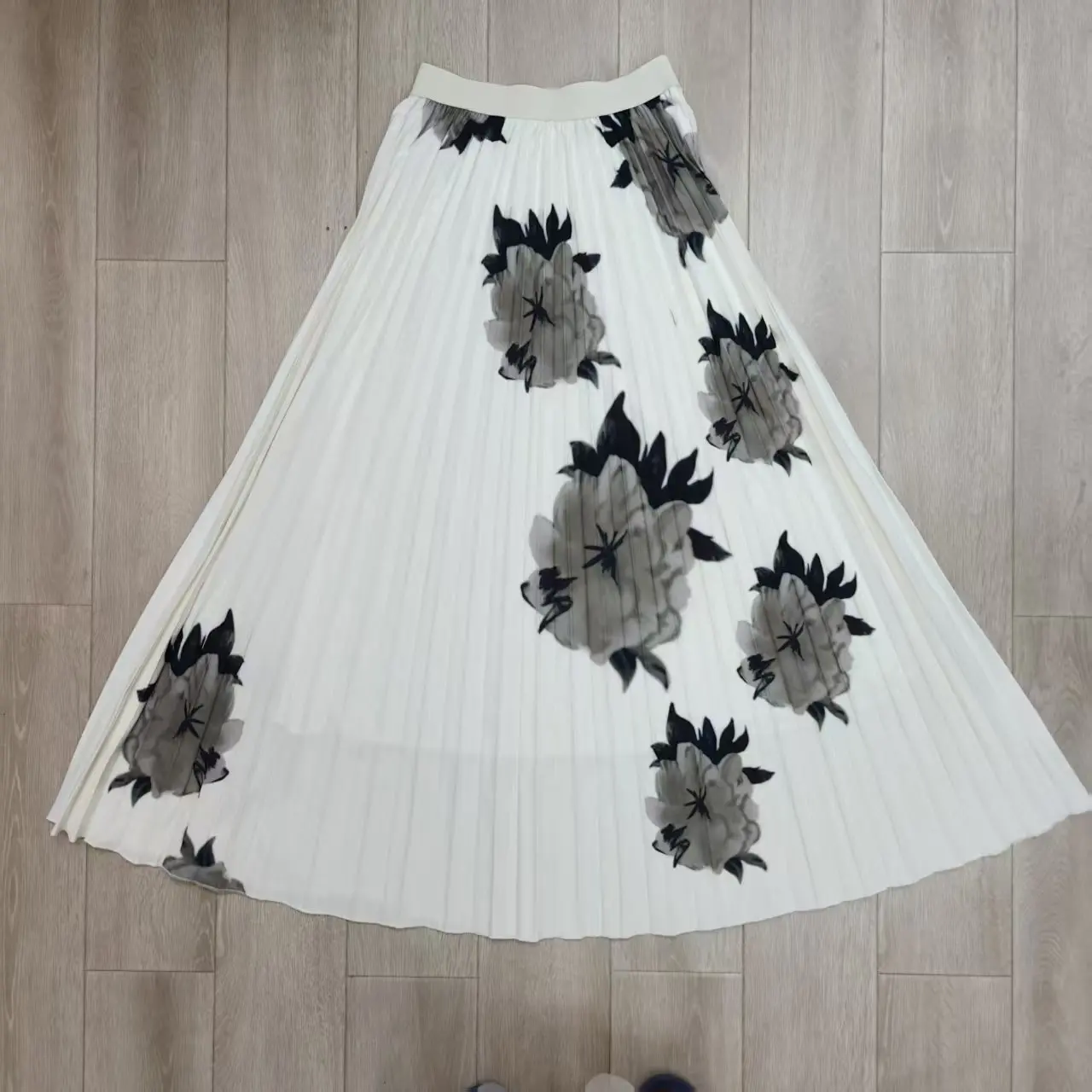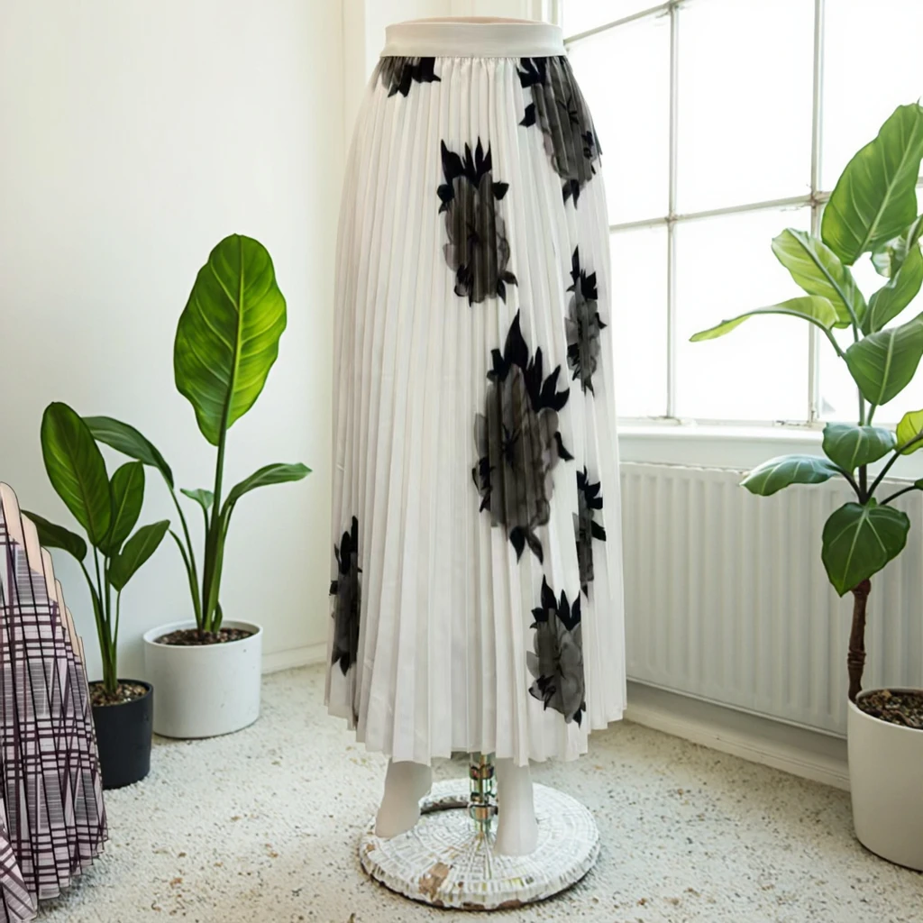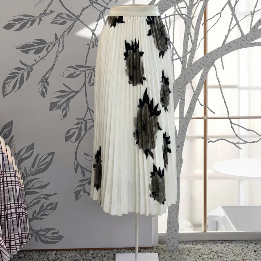 Autumn Fashion Pleated Floral Print Two-Piece Set Women's Short Sleeve Stretchy Top with Long Stretchy Skirt