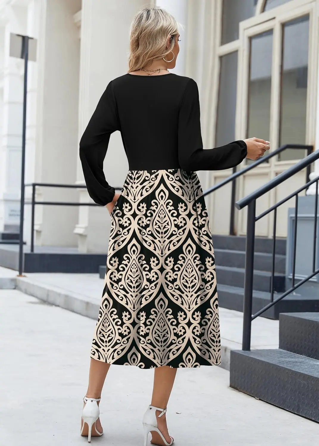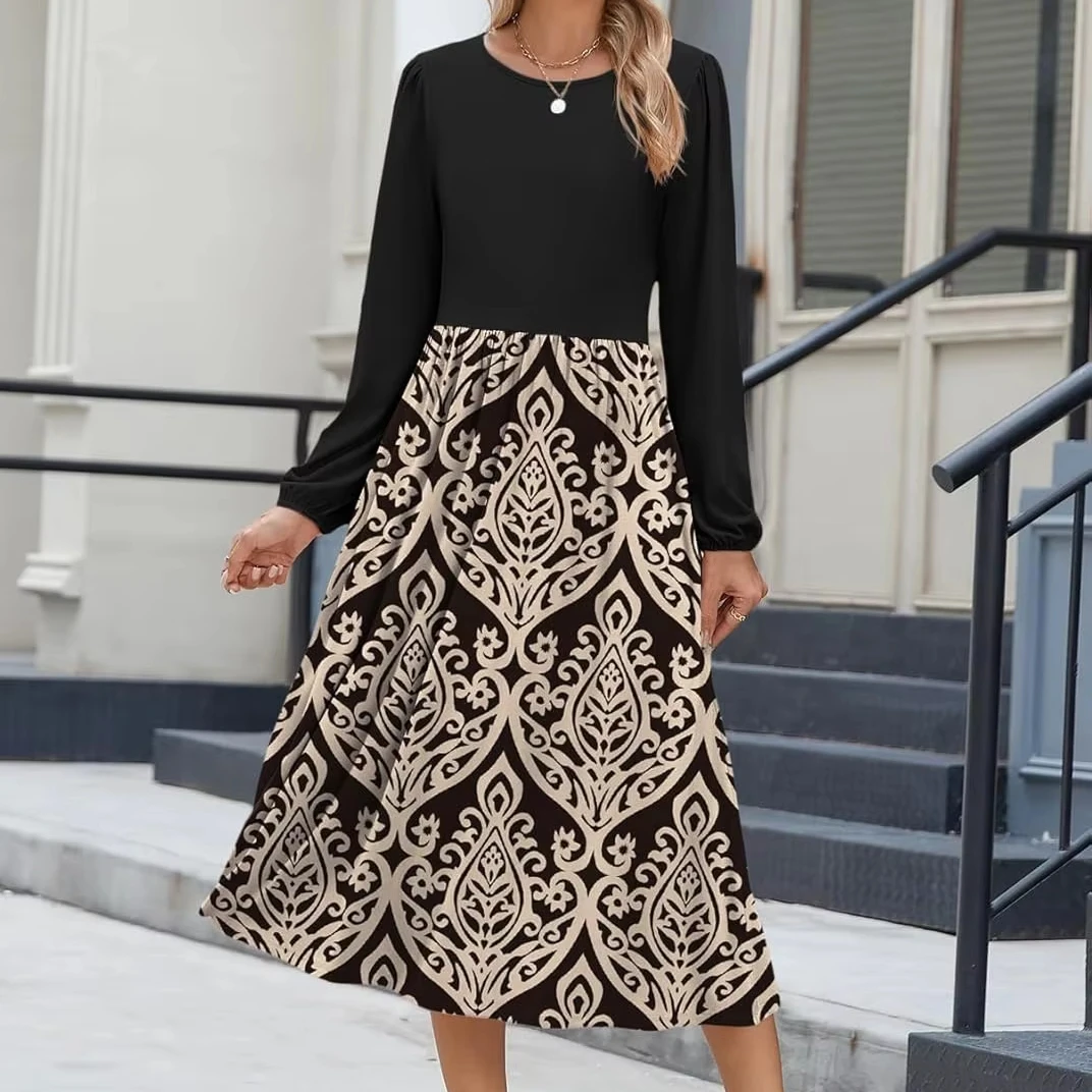 ZYHT 21541 Wholesale Crew Neck High Waist Casual Dresses Elegant Lace Velvet Mermaid Hem Ruched Long Sleeve Dresses for Women