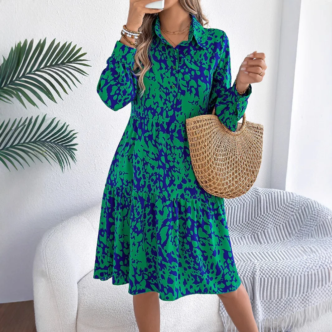 Vintage Floral Print Midi Dress Loose Casual Natural Fabric with Button Decoration for Spring Summer Single Breasted Shirt