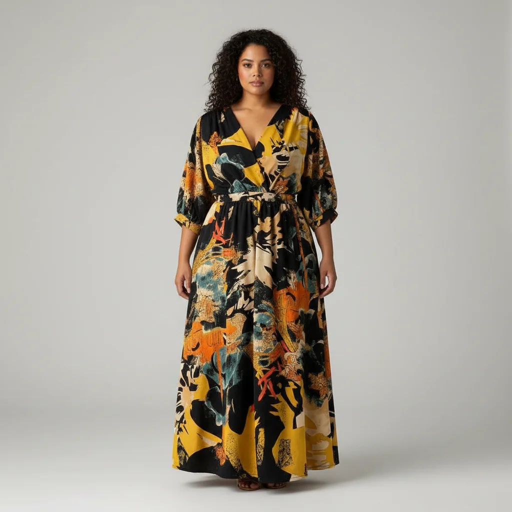 ZYHT 73963 Matte Satin Printed Geometric Pattern Maxi Women Asymmetric One Shoulder Ruched Hem Women Dress