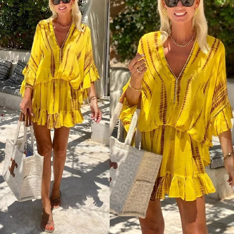 Stock Print Beach Casual Dress Loose Style S-XL Mini Beach Dress Mini Caftan Vintage Chiffon Wholesale Factory Customization