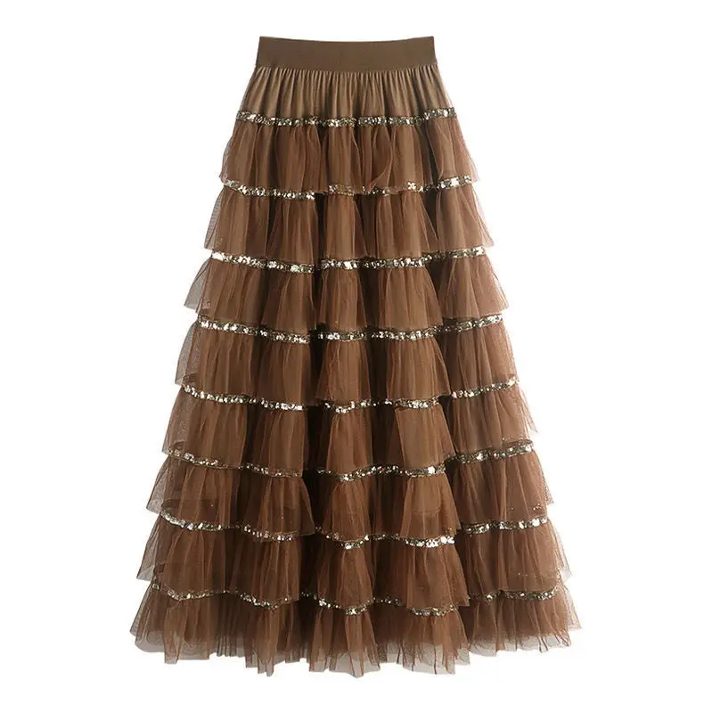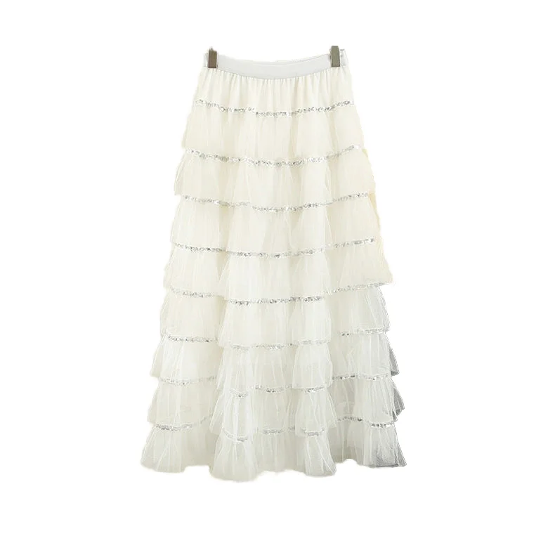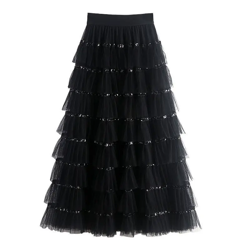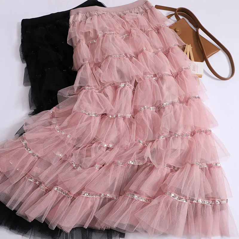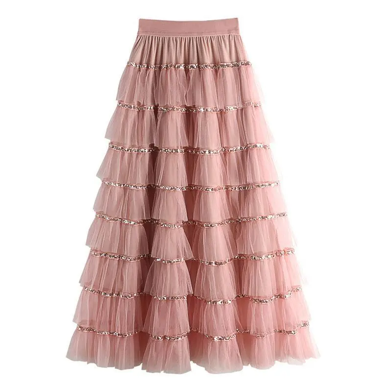 Women's High Waist Maxi Pleated Skirt Sweet Princess Fairy Patchwork Design Korean Fashion Party Faldas Casual Style for Summer