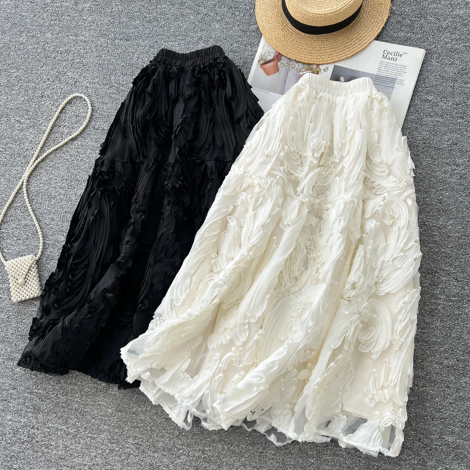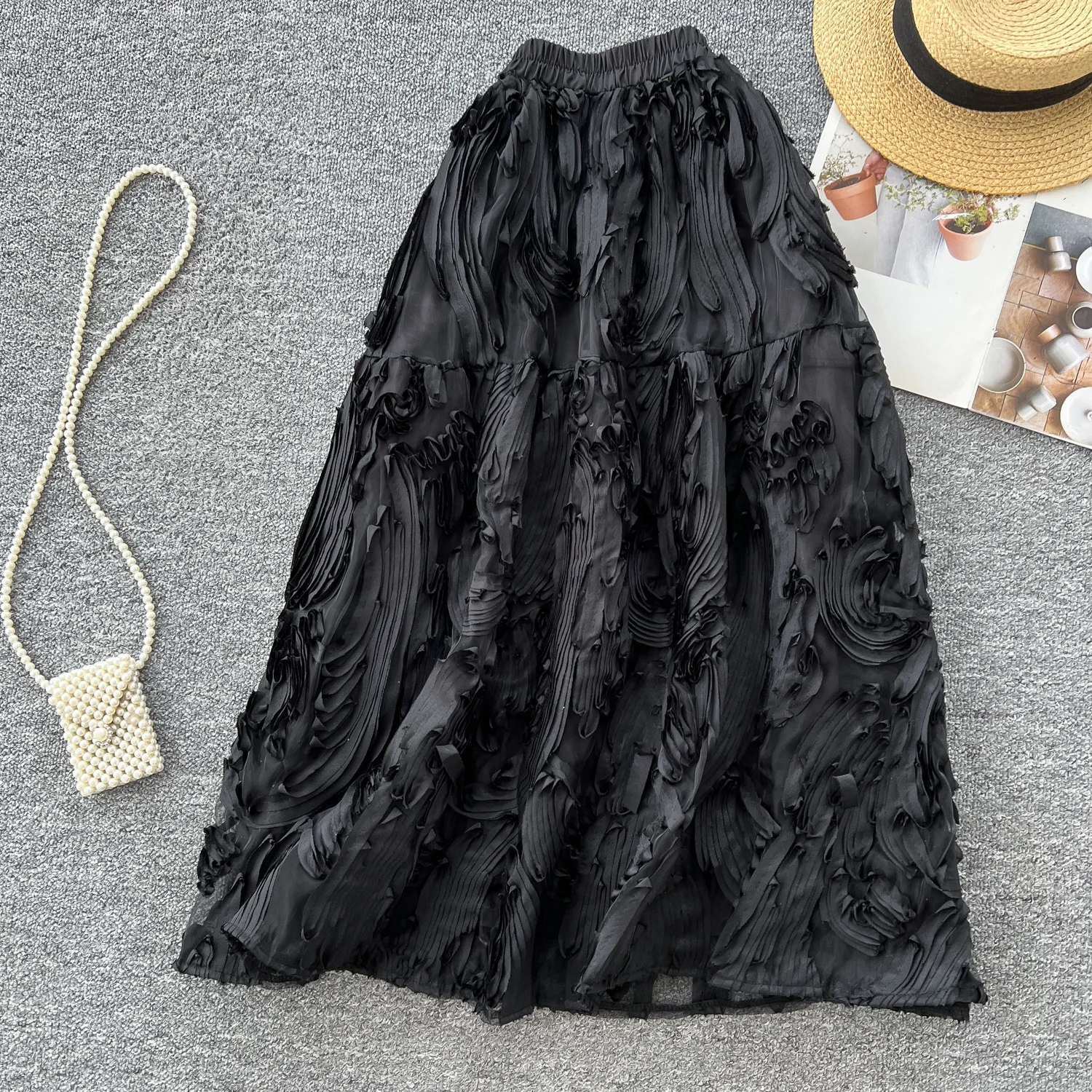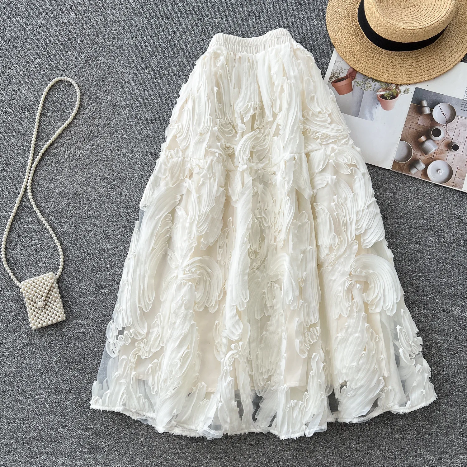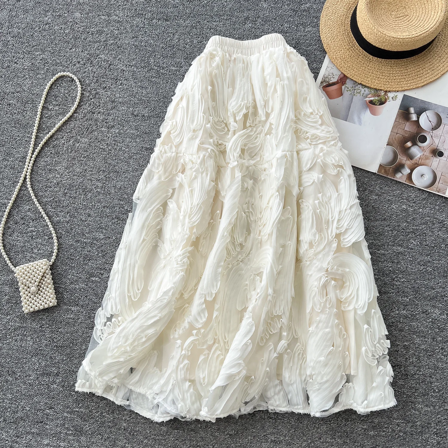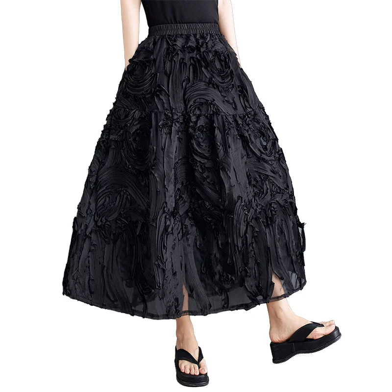 Summer New Fashion Retro Natural Waist Versatile Slimming A-line Sweet Polyester Elegant Women's Half Skirt