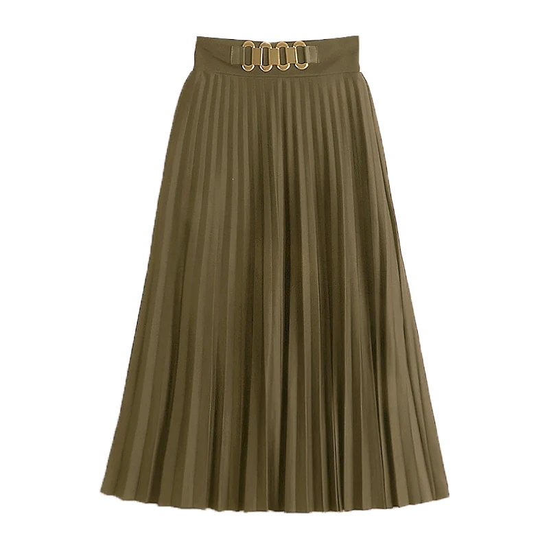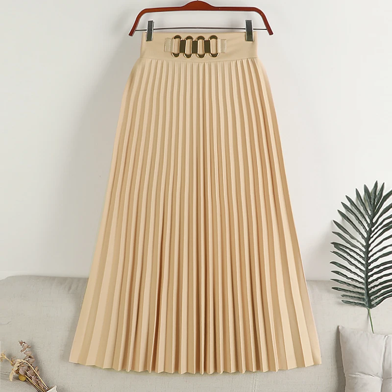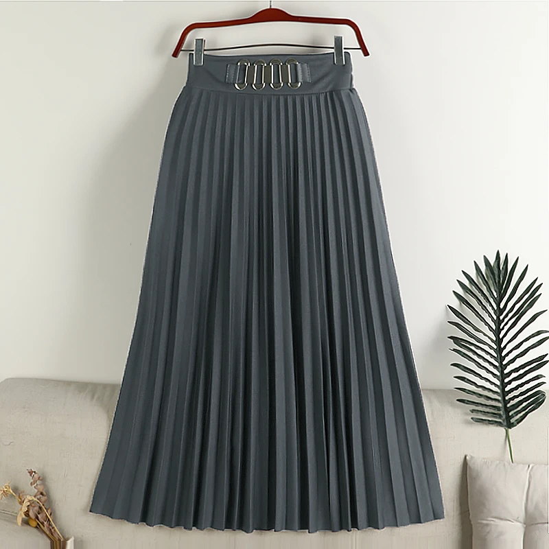Female With Belt Casual Fashion Midi Long Pleated Skirts Faldas Women's Skirt Ladies High Waist Pleated SKirt
